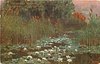 water lilies in front and between bulrushes