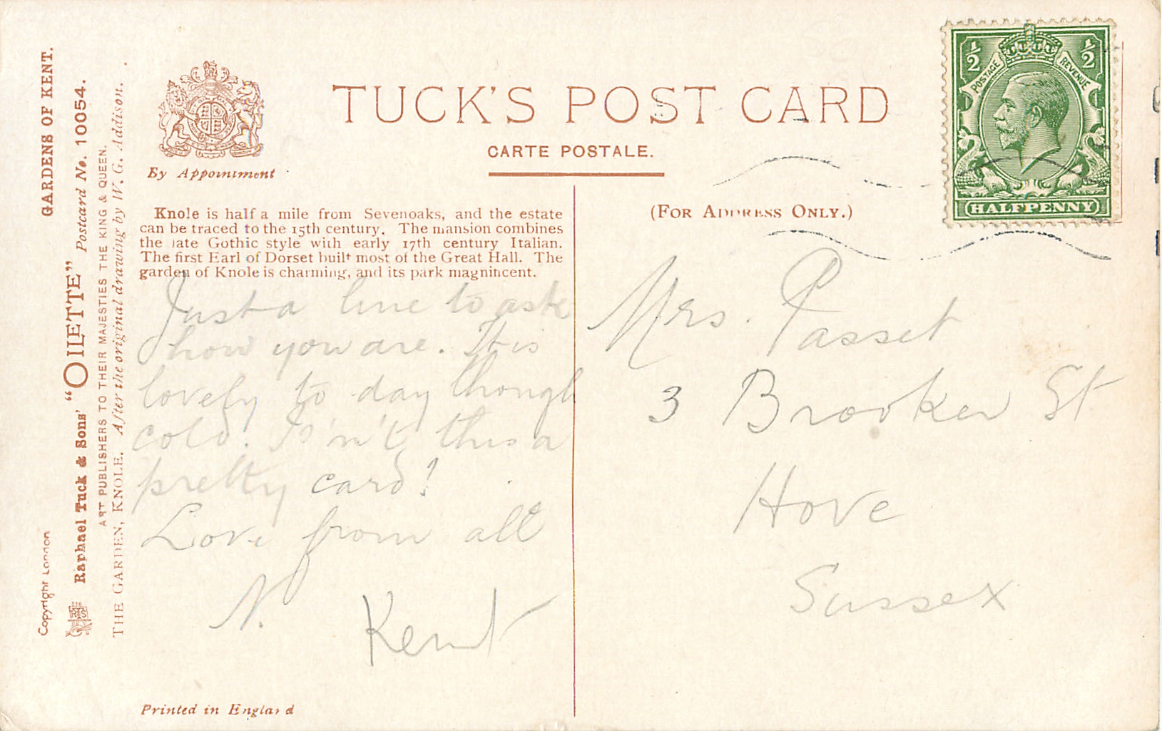OILETTE, PRINTED IN ENGLAND, COPYRIGHT LONDON, listed in 1926/1927 Postcard Catalogue