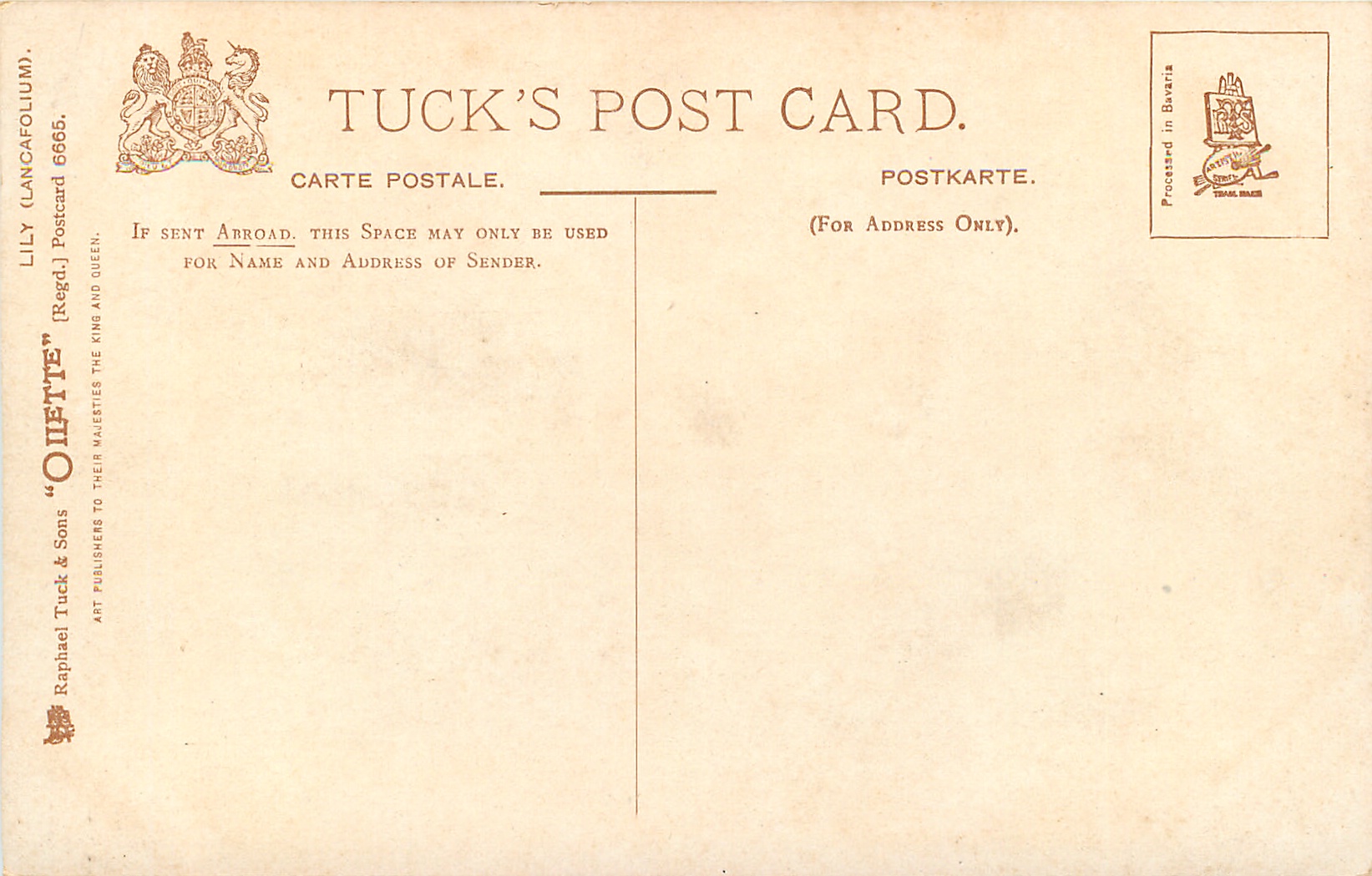 OILETTE, PROCESSED IN BAVARIA (in stamp box)