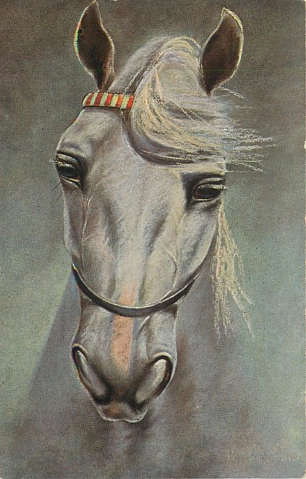 grey horse facing forward
