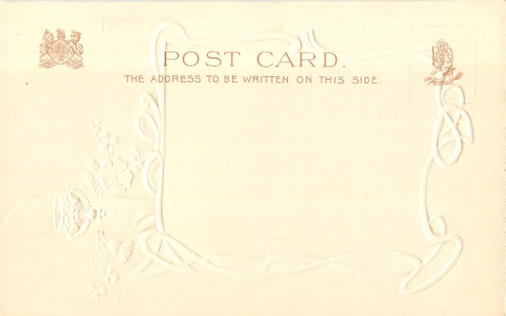 u/b, gilt embossed, shades of green background, DESIGNED IN ENGLAND, PHOTOTYPED IN BAVARIA, listed in RAPHAEL TUCK & SONS' LD. CHRISTMAS & NEW YEAR 1904/1905 catalogue