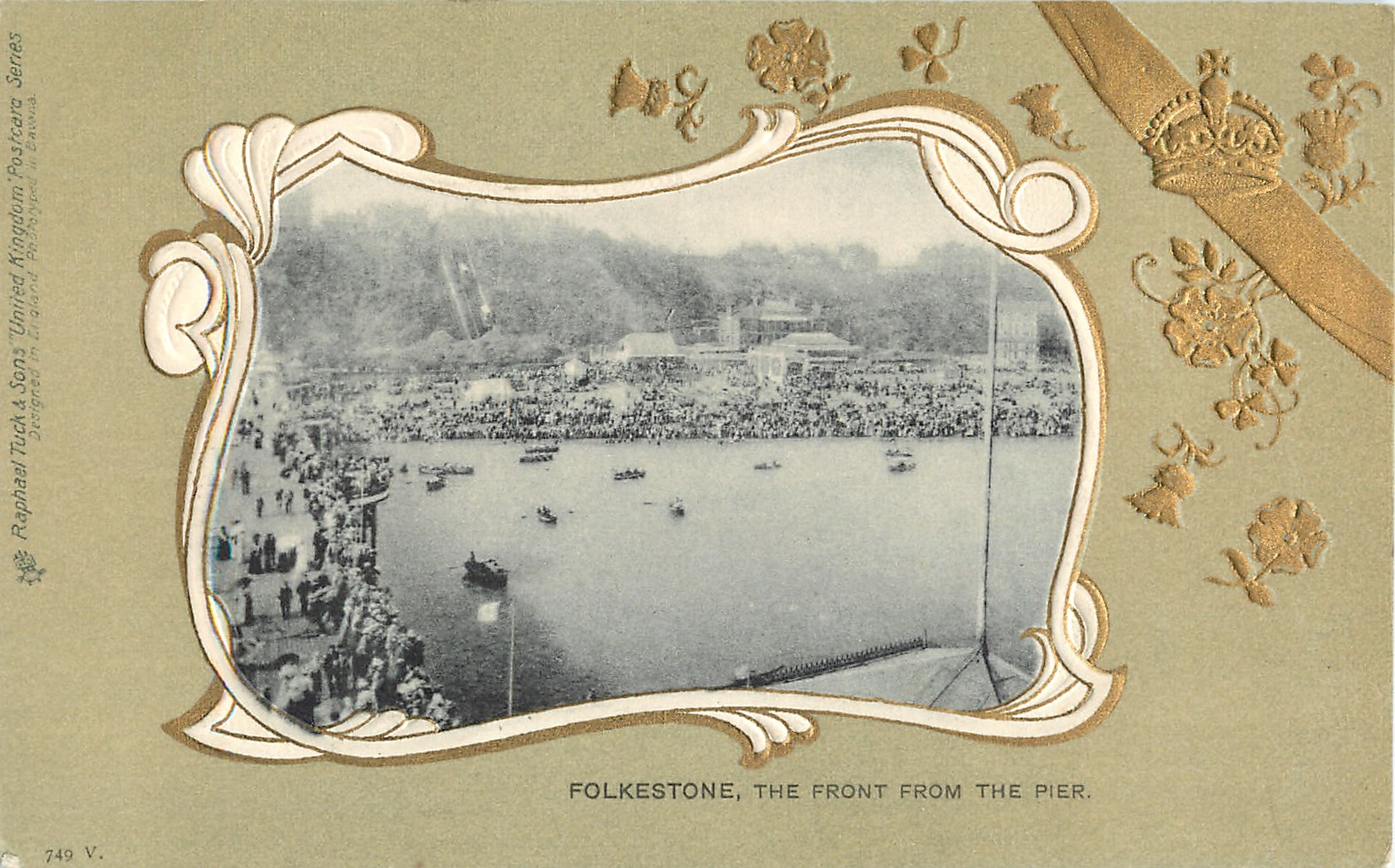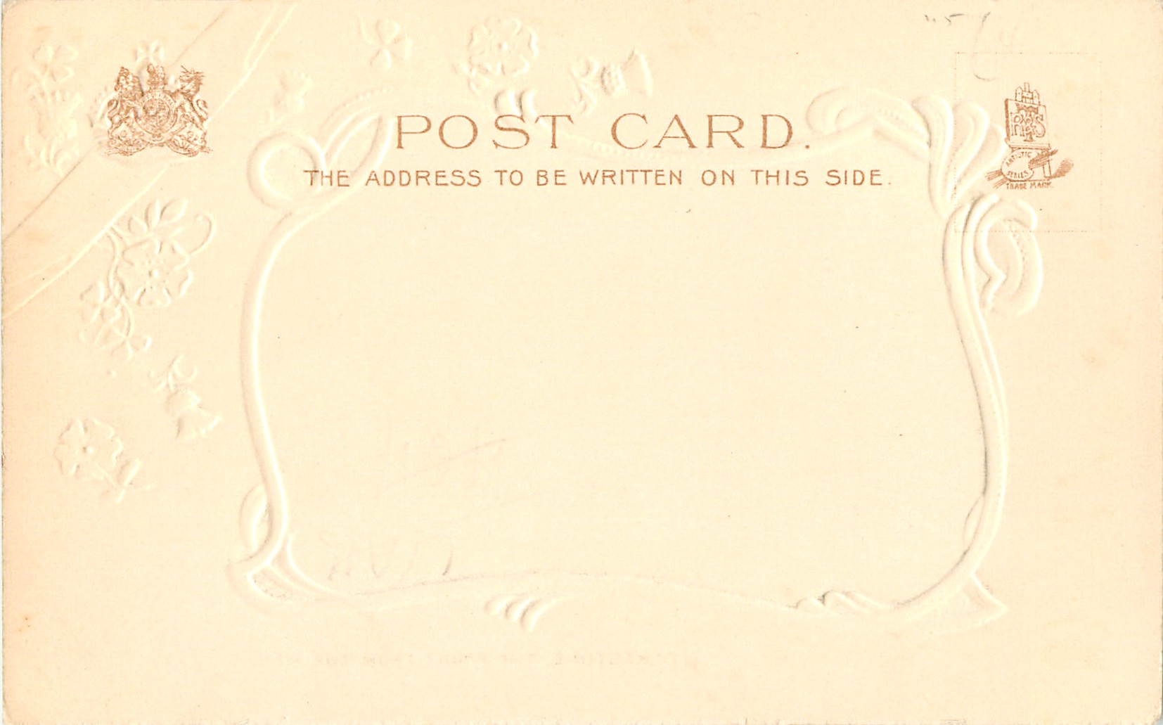 u/b, gilt embossed, shades of green background, DESIGNED IN ENGLAND, PHOTOTYPED IN BAVARIA, listed in RAPHAEL TUCK & SONS' LD. CHRISTMAS & NEW YEAR 1904/1905 catalogue