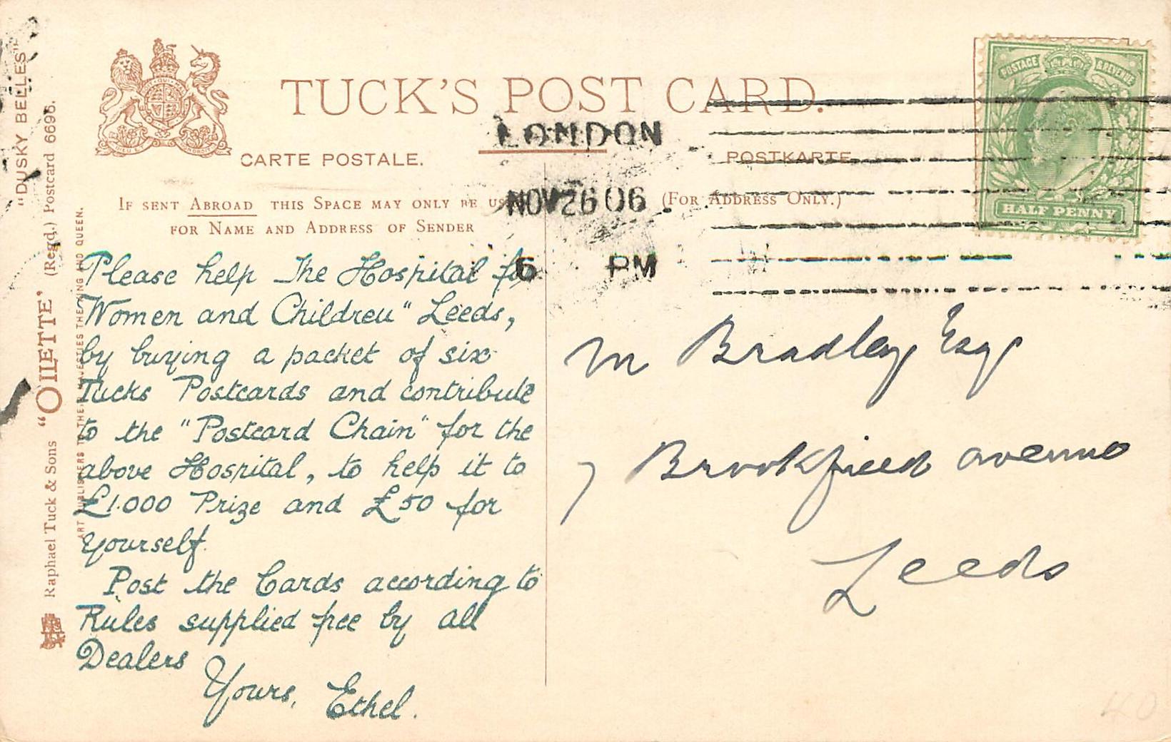 comes with POSTCARD CHAIN hospital fundraiser ad. on back