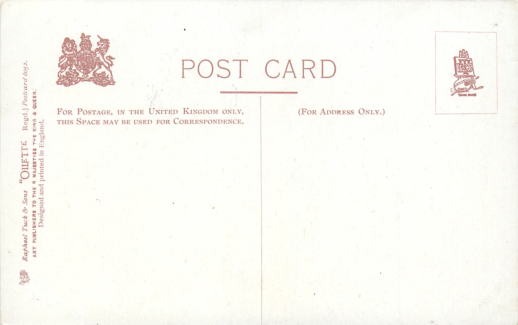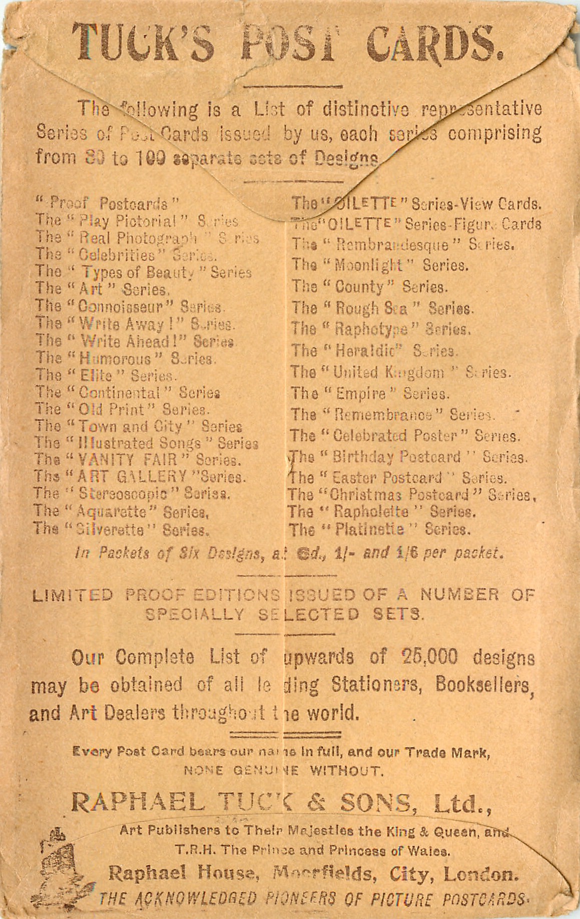 OILETTE, DESIGNED AND PRINTED IN ENGLAND, listed in 1904 & 1911/1912 & 1913/1914 POSTCARD Catalogues, SERIES IX. (on packet), listed in TUCK'S TRAVELOGUES (USA?1905)
