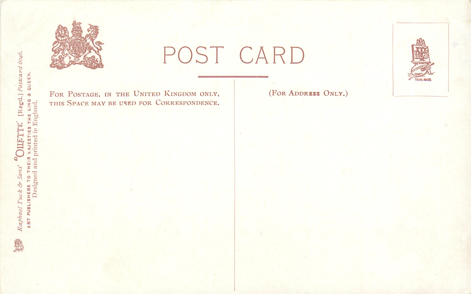 OILETTE, DESIGNED AND PRINTED IN ENGLAND, listed in 1904 & 1911/1912 Postcard Catalogues