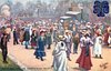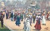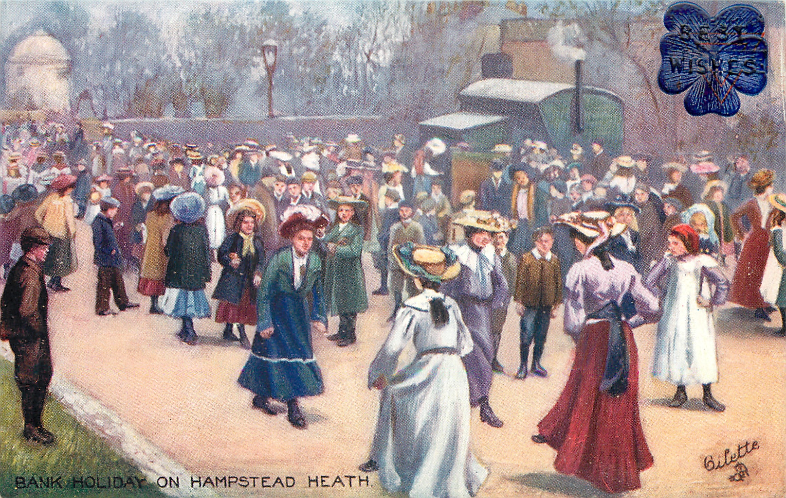 BANK HOLIDAY ON HAMPSTEAD HEATH (green foodstall with smoking chimney in background)