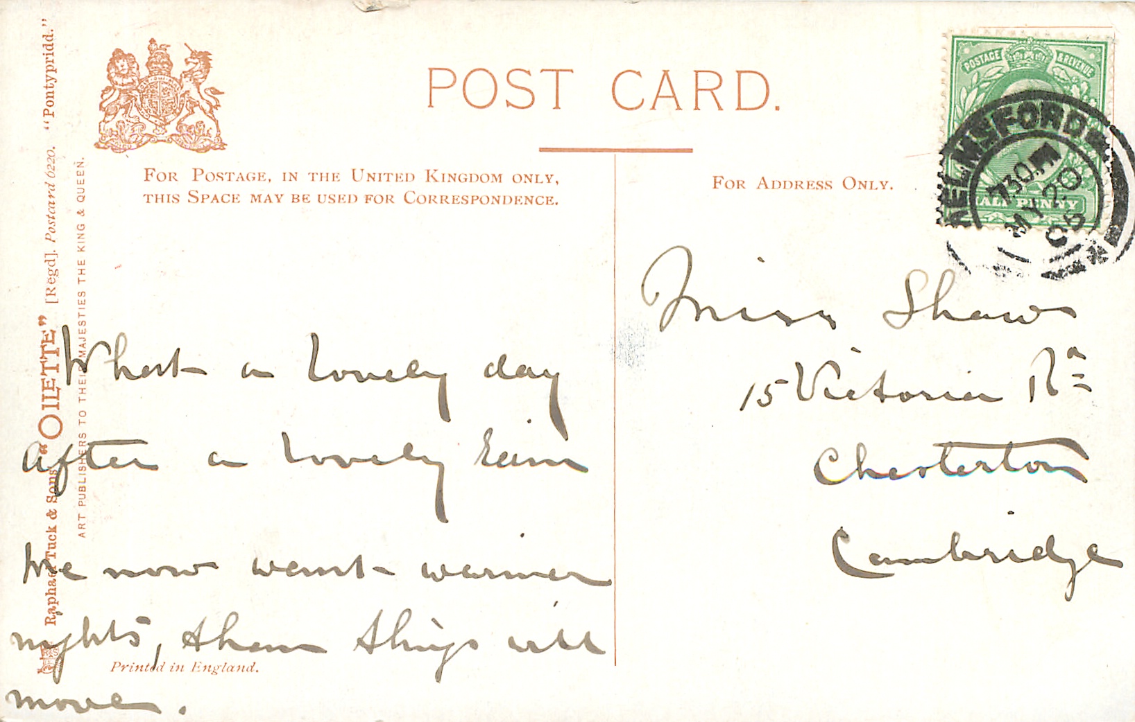 OILETTE, PRINTED IN ENGLAND, listed in 1904/1905 Postcard Catalogue