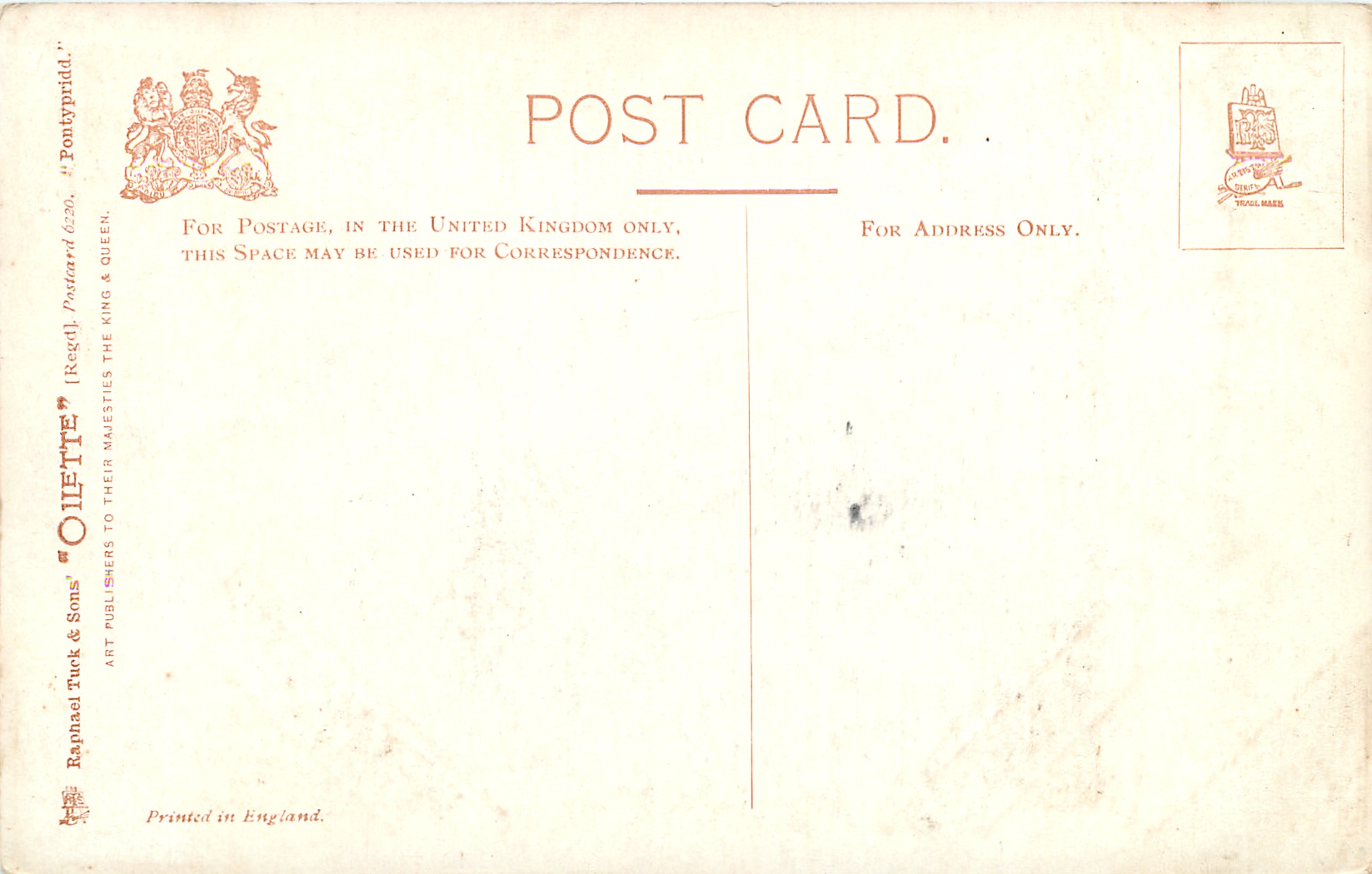 OILETTE, PRINTED IN ENGLAND, listed in 1904/1905 Postcard Catalogue