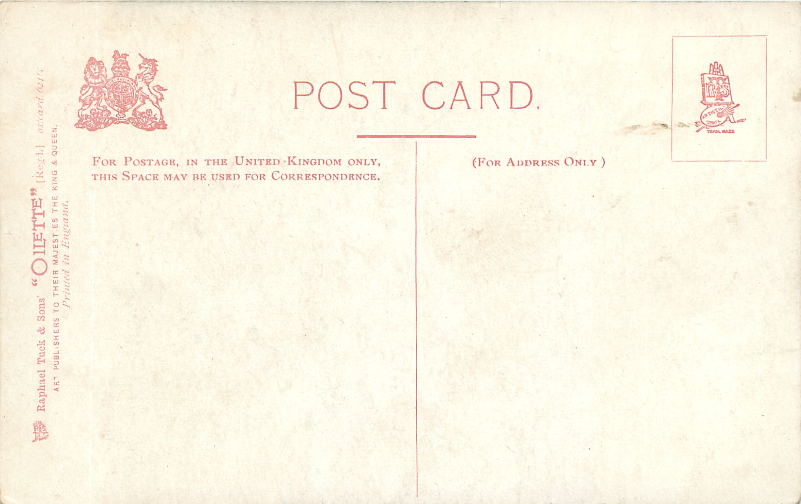 OILETTE, PRINTED IN ENGLAND, come with and w/o series titles front or back, come with and w/o OILETTE on front, 3 backs, listed in 1908/1909 & 1911/1912 Postcard Catalogue
