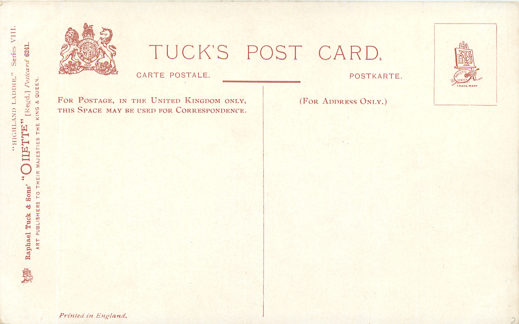 OILETTE, PRINTED IN ENGLAND, come with and w/o series titles front or back, come with and w/o OILETTE on front, 3 backs, listed in 1908/1909 & 1911/1912 Postcard Catalogue