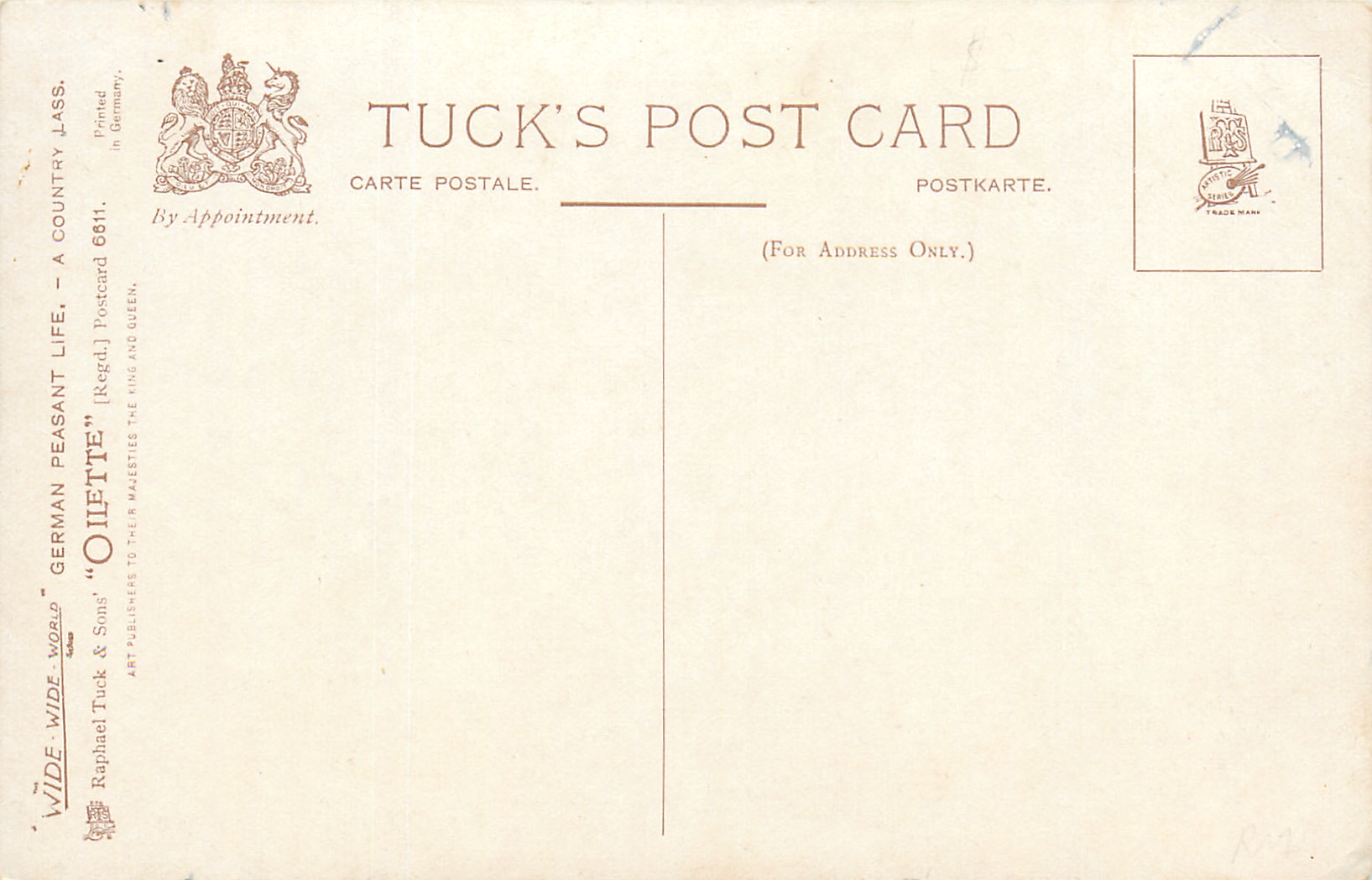 OILETTE, WIDE-WIDE-WORLD, PROCESSED IN BAVARIA, listed in 1908/1909(USA) & 1911/1912 & 1913/1914 &1930 POSTCARD Catalogues