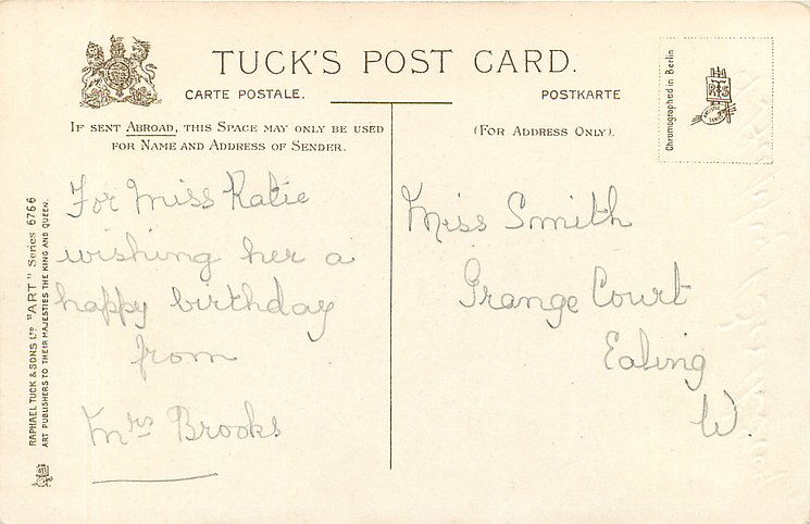 ART, CHROMOGRAPHED IN BERLIN (in stamp box or not), listed in 1908/1909 & 1911/1912 Postcard Catalogue