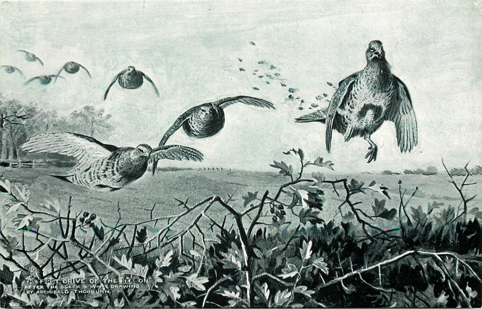 PRINTED IN ENGLAND, SERIES I., appears on packet but not on cards, packet inscribed DUPLOTYPE SERIES, shades of grey/black, AFTER THE BLACK & WHITE DRAWINGS BY ARCHIBALD THORBURN., listed in 1908/1909 & 1911/1912 & 1930 POSTCARD CatalogueS