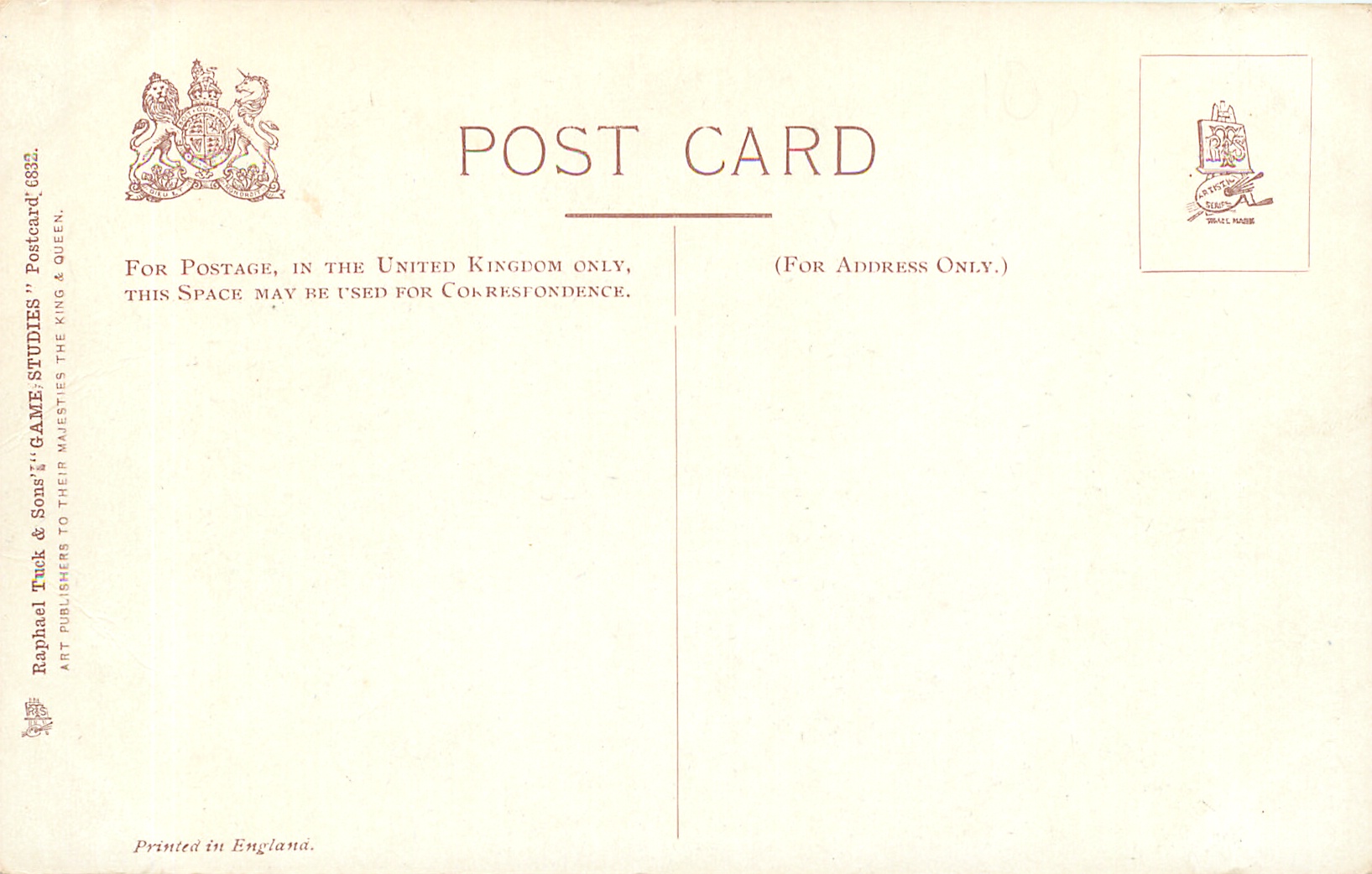 PRINTED IN ENGLAND, SERIES II., appears on packet but not on cards, packet inscribed THE "DUPLOTYPE" SERIES, shades of grey/black, AFTER THE BLACK & WHITE DRAWING BY G.E. LODGE. listed in 1911/1912 & 1930 POSTCARD CatalogueS