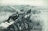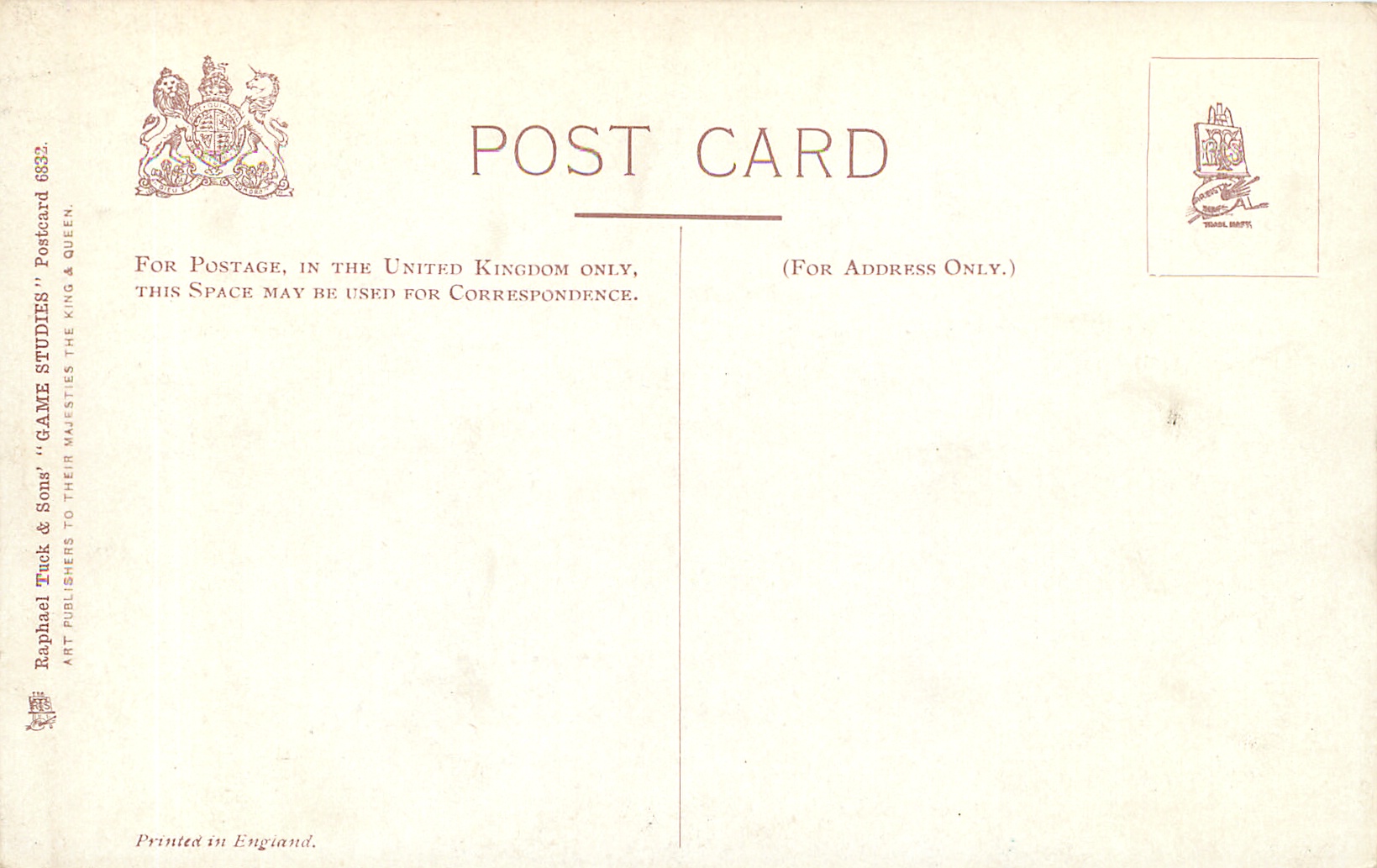 PRINTED IN ENGLAND, SERIES II., appears on packet but not on cards, packet inscribed THE "DUPLOTYPE" SERIES, shades of grey/black, AFTER THE BLACK & WHITE DRAWING BY G.E. LODGE. listed in 1911/1912 & 1930 POSTCARD CatalogueS