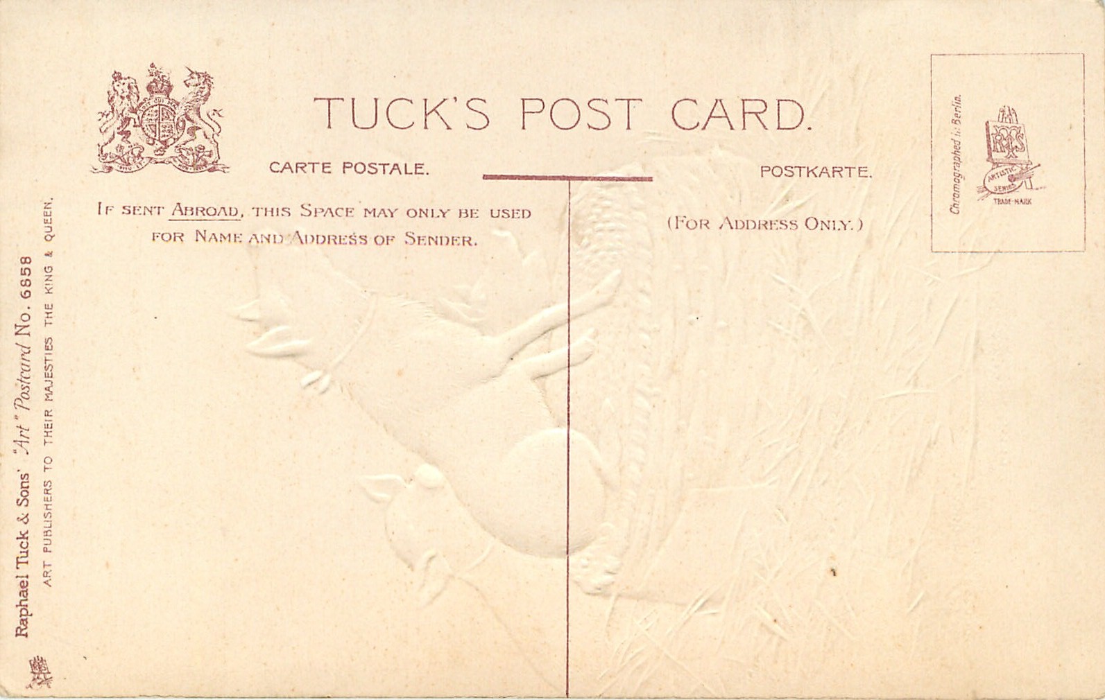 embossed, ART, CHROMOGRAPHED IN BERLIN (in stamp box), same images CHRISTMAS 8260 &8270