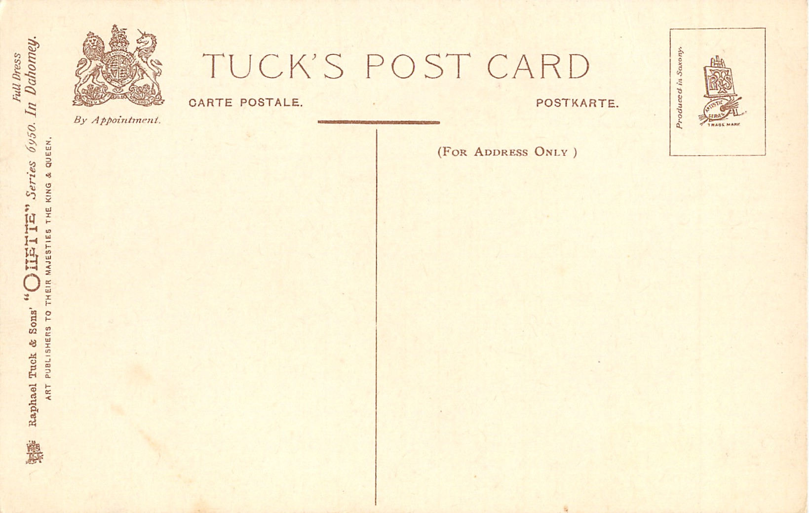 OILETTE, PRODUCED IN SAXONY (in stamp box), listed in 1908/1909 &1911/1912 Postcard Catalogue