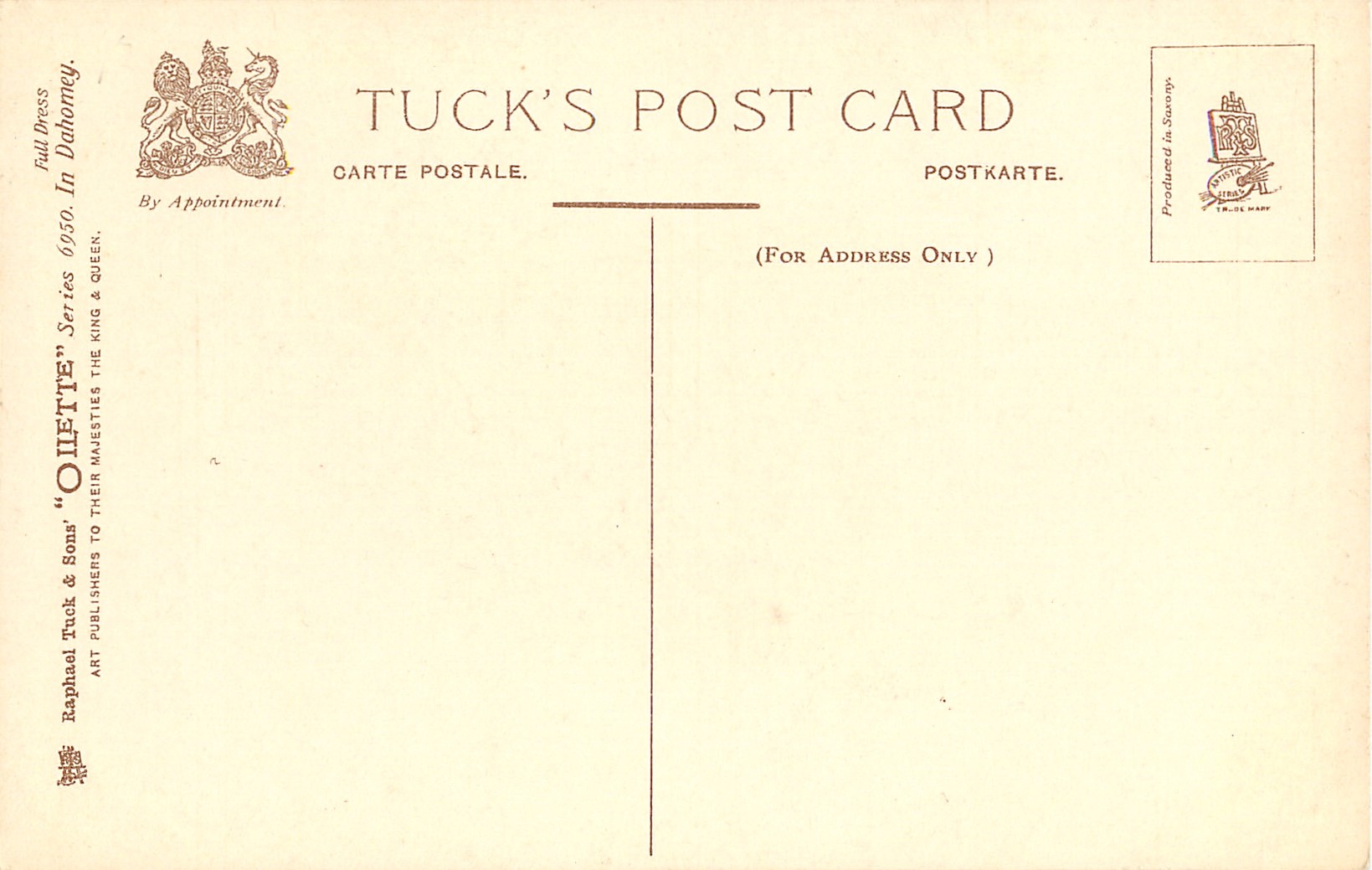 OILETTE, PRODUCED IN SAXONY (in stamp box), listed in 1908/1909 &1911/1912 Postcard Catalogue