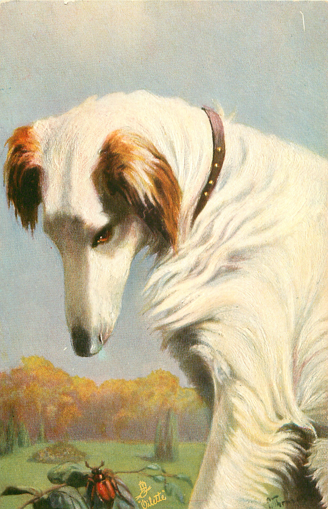 OILETTE, PRINTED IN GERMANY, same image, German back, OILETTE 479B, WINDEHUNDE, dogs are borzoi = Russian greyhounds
