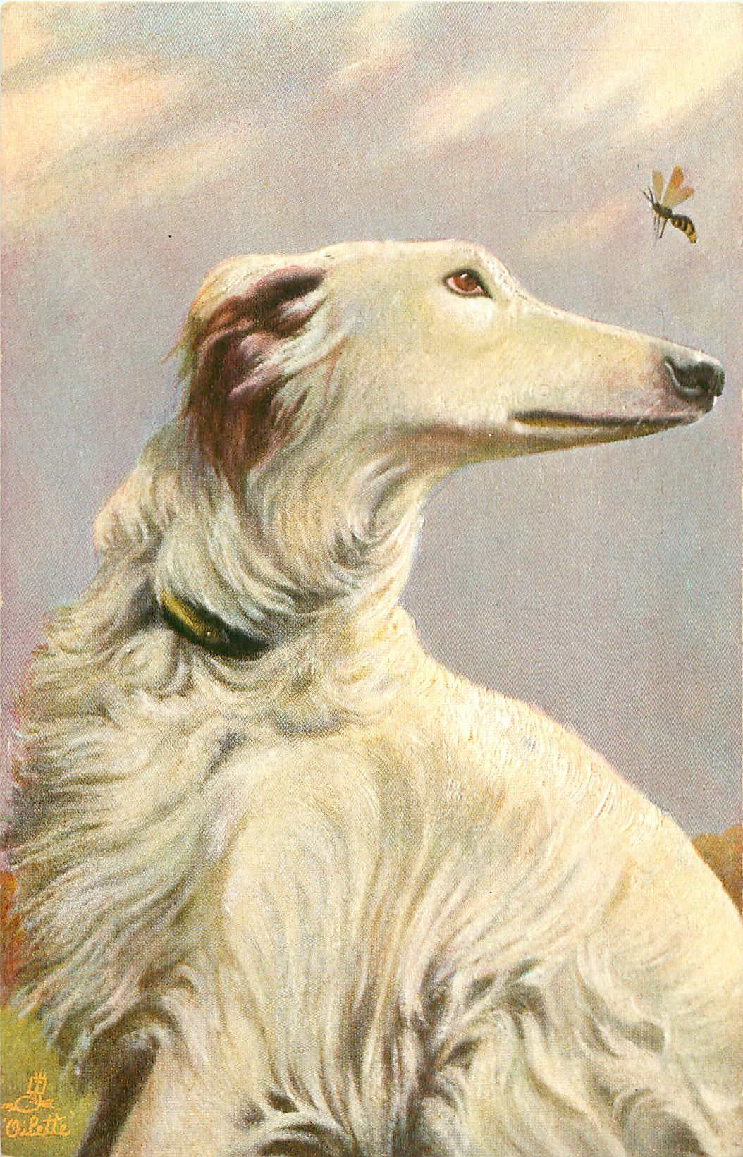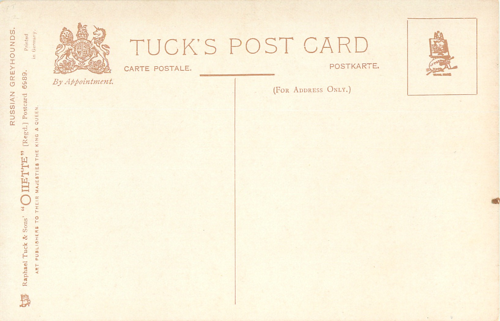 OILETTE, PRINTED IN GERMANY, same image, German back, OILETTE 479B, WINDEHUNDE, dogs are borzoi = Russian greyhounds