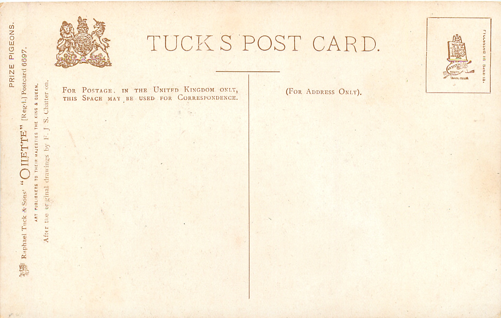 OILETTE, PROCESSED IN BAVARIA (in stamp box), AFTER THE ORIGINAL DRAWINGS BY F.J.S. CHATTERTON, listed in 1908/1909 & 1911/1912 & 1912/1913 POSTCARD Catalogues