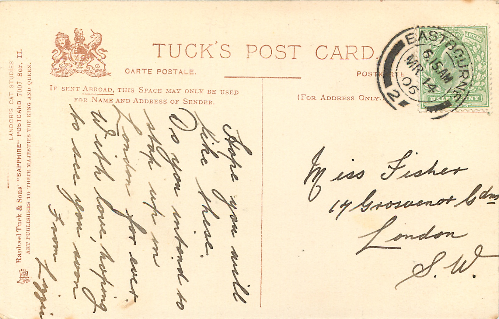 shades of blue/grey, SAPPHIRE, PHOTOTYPED IN AUSTRIA (in stamp box) 3 backs, comes w/o SERIES II, most of these images come with French backs & titles, SERIE 252 & 409, many come in ART sets 862-865 & REAL PHOTOGRAPH 5089/93 & in PHOTOCHROME 6495/6496 CAT STUDIES