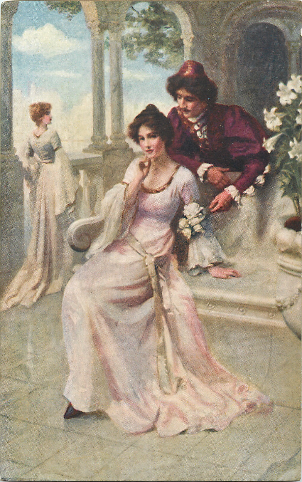 OILETTE CONNOISSEUR, PRINTED IN ENGLAND, EXHIBITED AT THE ROYAL ACADEMY, 1900, AND AT THE WORLD'S EXPOSITION AT ST. LOUIS, 1903, card title on back, listed in 1930 POSTCARD Catalogue, listed in TUCK'S TRAVELOGUES (USA?1905)