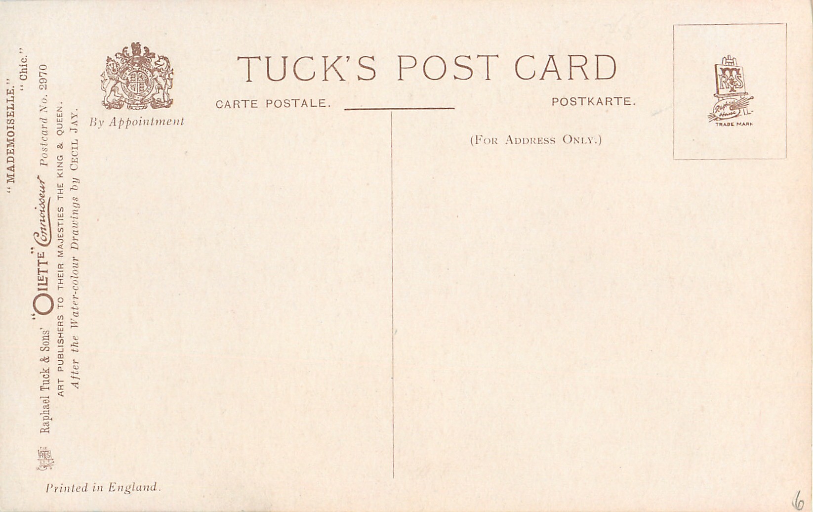 OILETTE CONNOISSEUR, PRINTED IN ENGLAND, AFTER THE WATER-COLOUR DRAWINGS BY CECIL JAY.