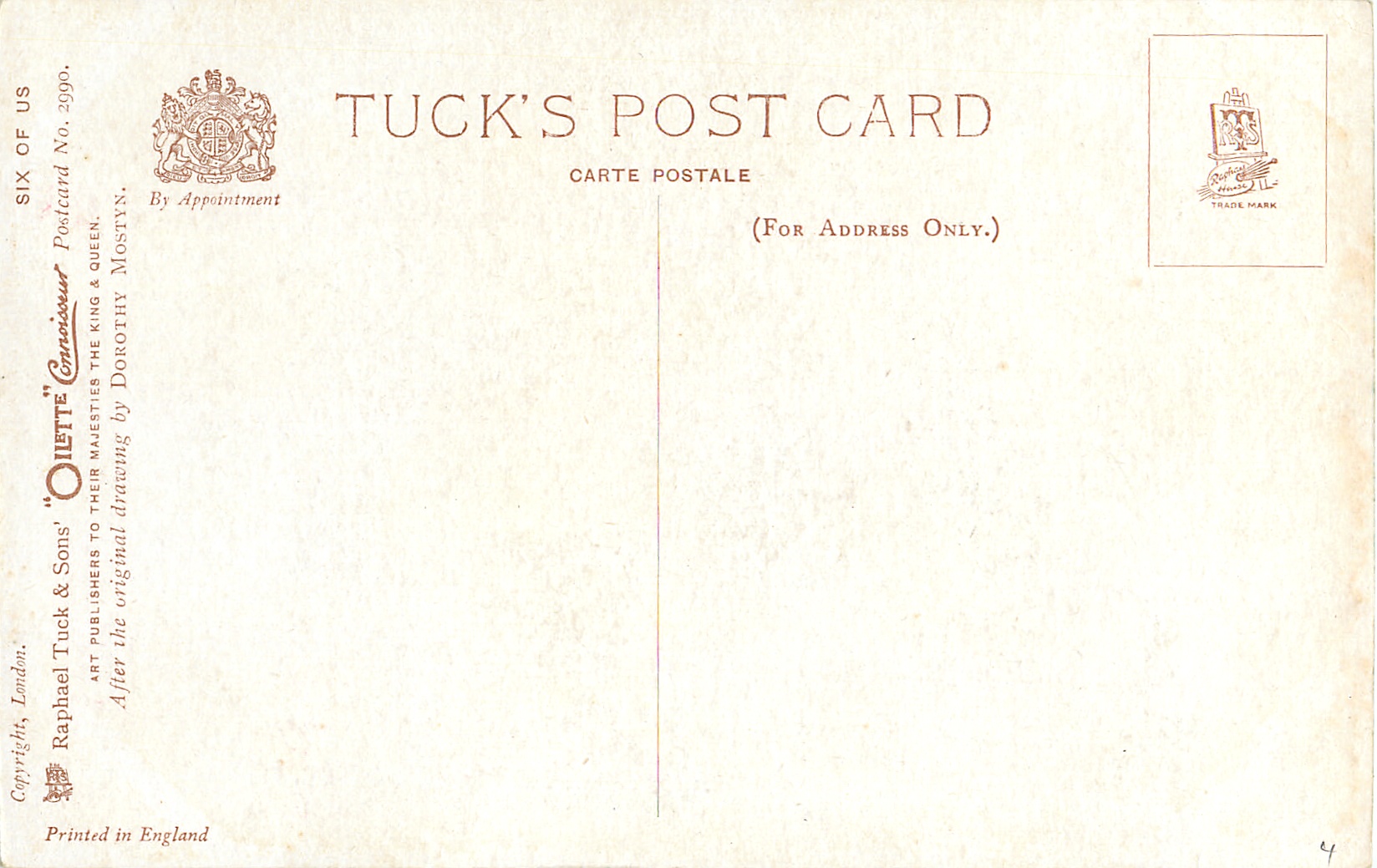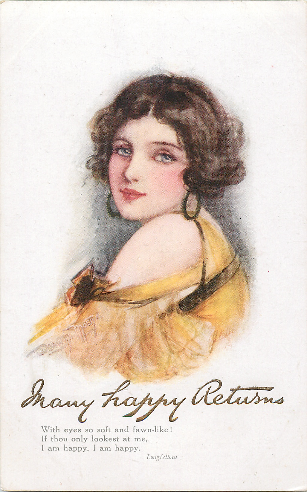 OILETTE CONNOISSEUR, COPYRIGHT LONDON, PRINTED IN ENGLAND, AFTER THE ORIGINAL DRAWING BY DOROTHY MOSTYN.. listed in1930 POSTCARD Catalogue come opt, in gilt A HAPPY BIRTHDay