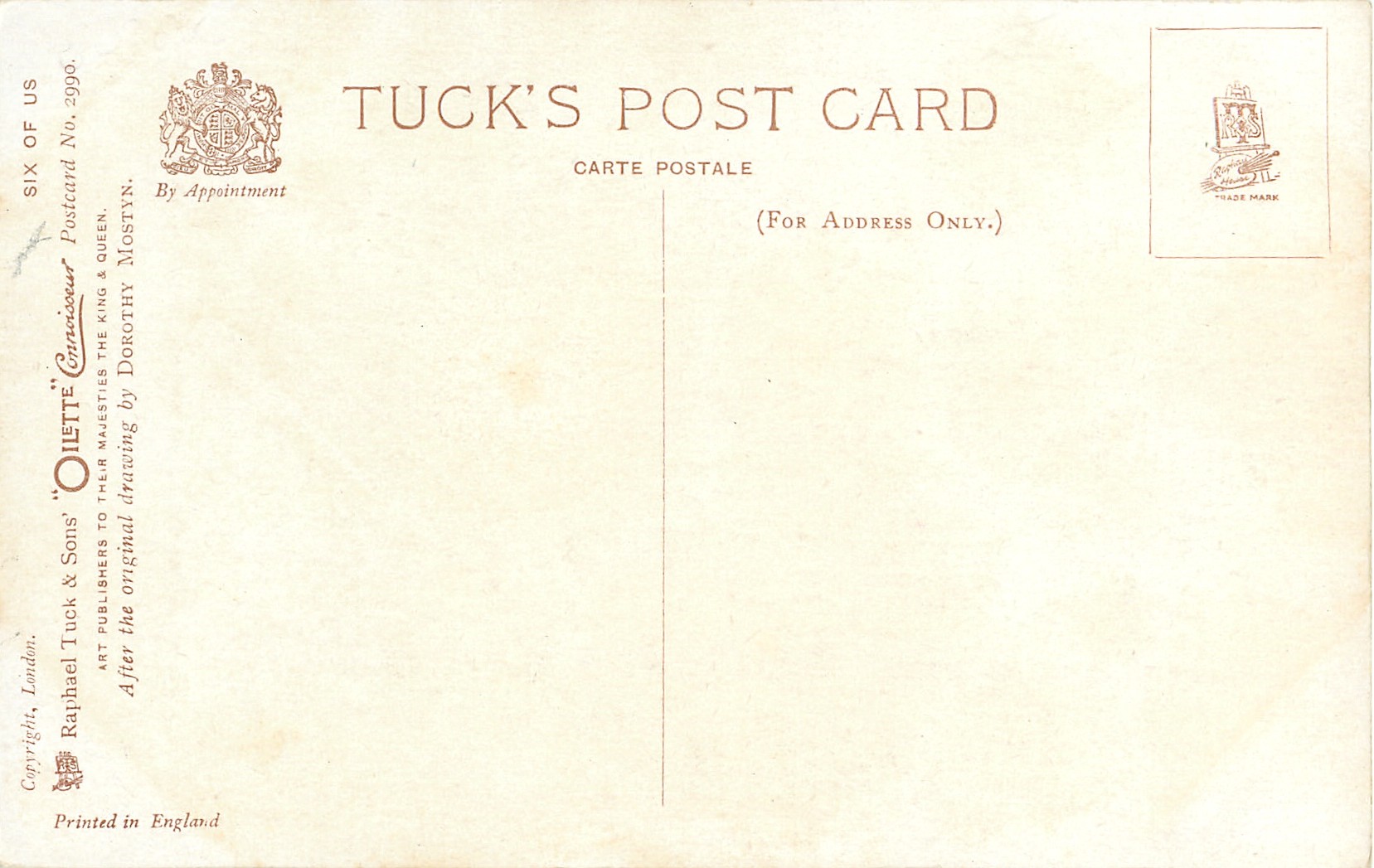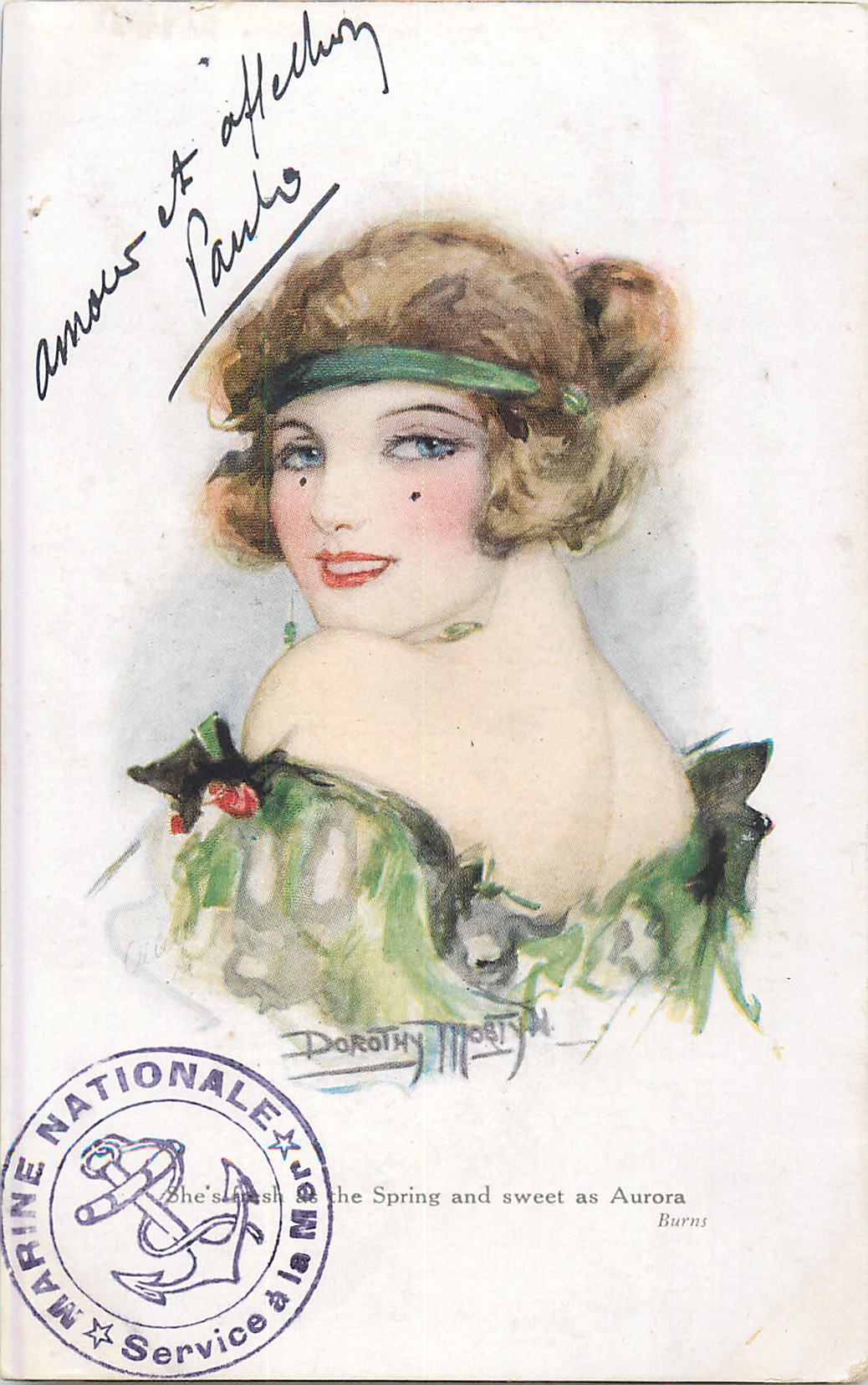 OILETTE CONNOISSEUR, COPYRIGHT LONDON, PRINTED IN ENGLAND, AFTER THE ORIGINAL DRAWING BY DOROTHY MOSTYN.. listed in1930 POSTCARD Catalogue come opt, in gilt A HAPPY BIRTHDay