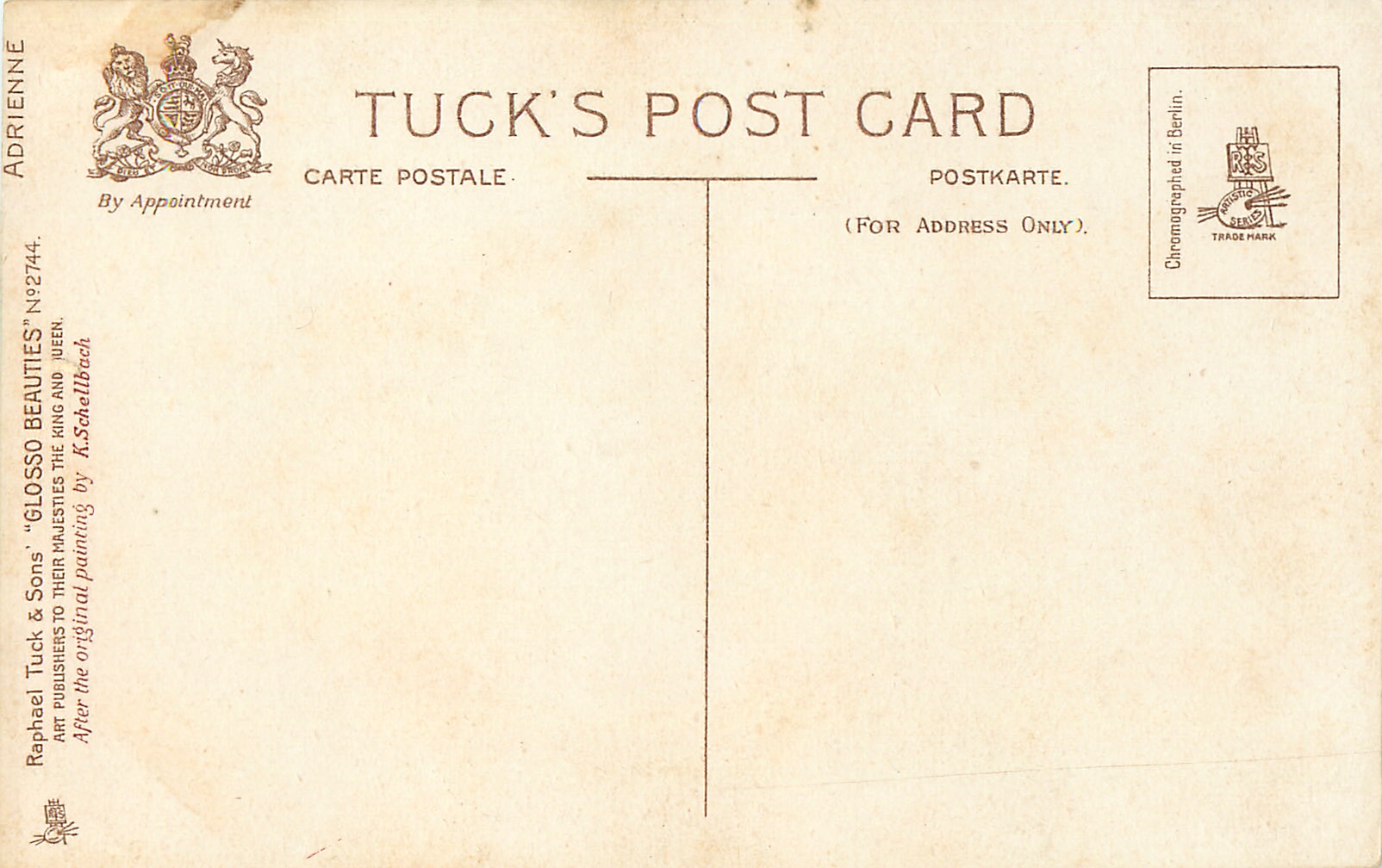 CHROMOGRAPHED IN BERLIN (in stamp box), card title on back