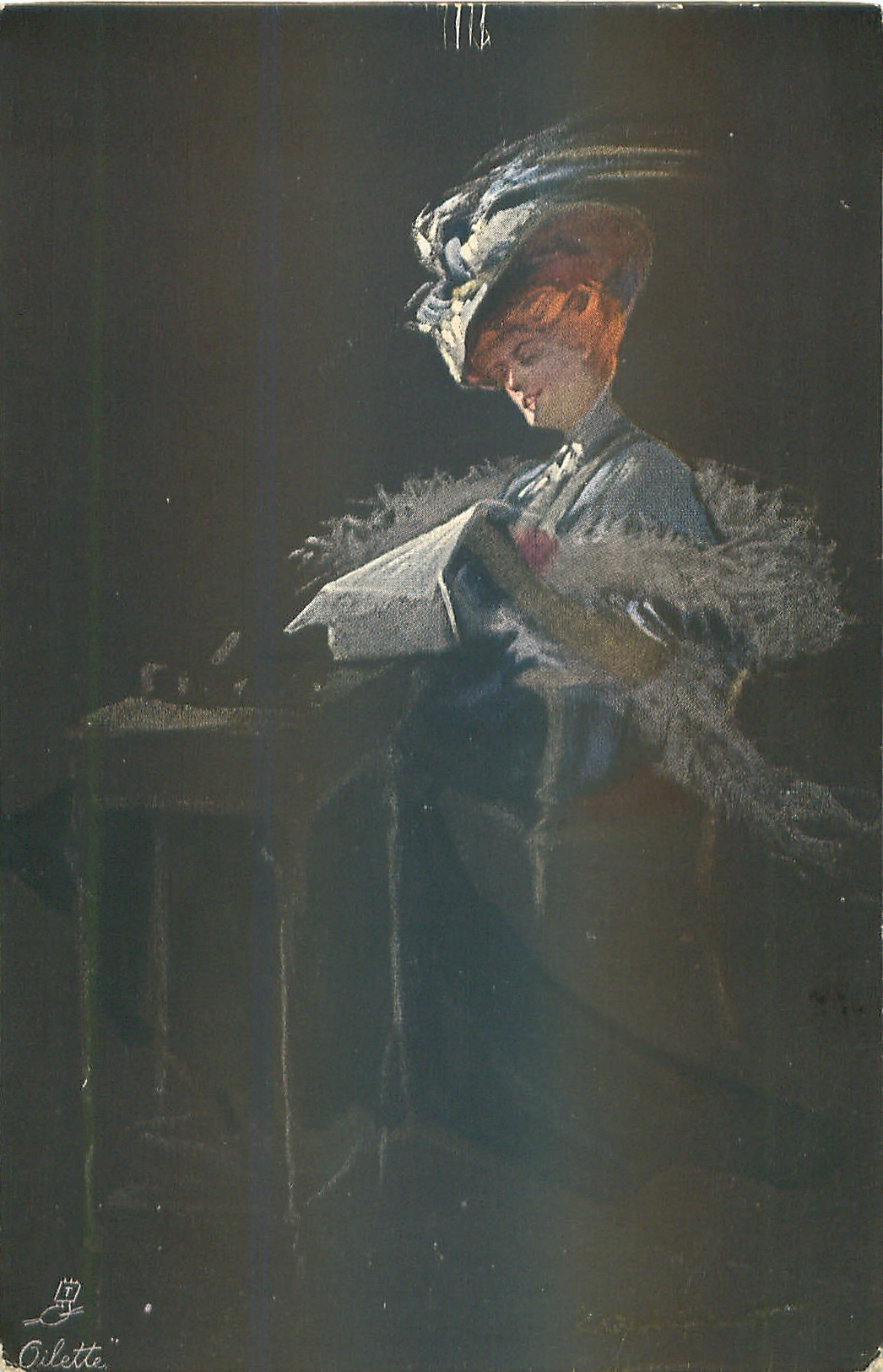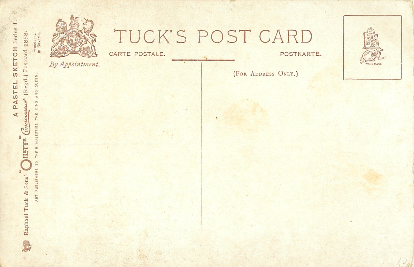 OILETTE CONNOISSEUR, PROCESSED IN BAVARIA, listed in 1911/1912 Postcard Catalogue, same image German back in red on brown background 531, in grey /green on black 534, various colours on black 541 B