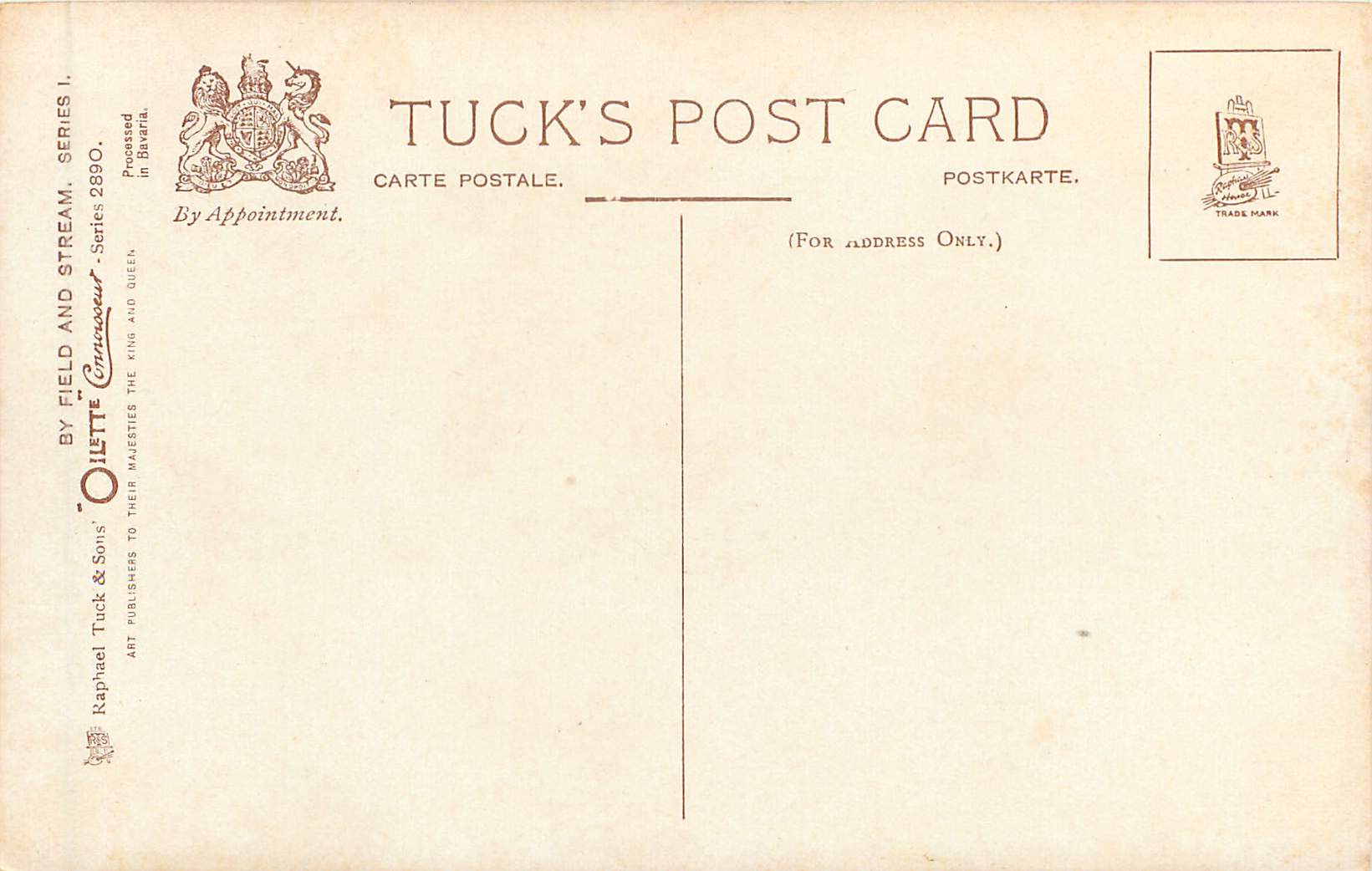 OILETTE CONNOISSEUR, PROCESSED IN BAVARIA, same images German backs OILETTE 824/825 DER DEUTSCHE WALDE, artists signature on some cards, usually indistinct, listed in TUCK'S TRAVELOGUES (USA?1905)