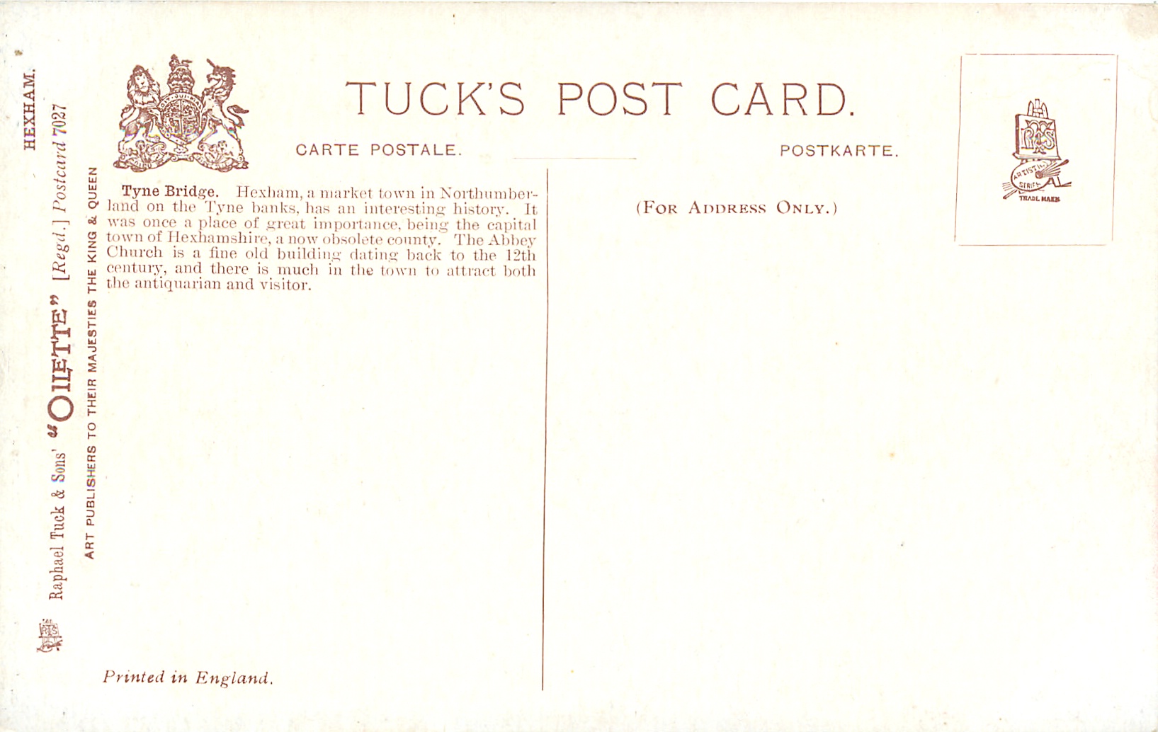 OILETTE, PRINTED IN ENGLAND, listed in 1911/1912 &1930 POSTCARD Catalogues