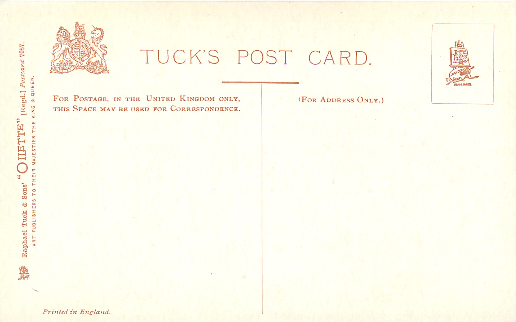 OILETTE, PRINTED IN ENGLAND, listed in 1912 & 1914 Postcard Catalogues, on packet lists set as XII (not on cards)