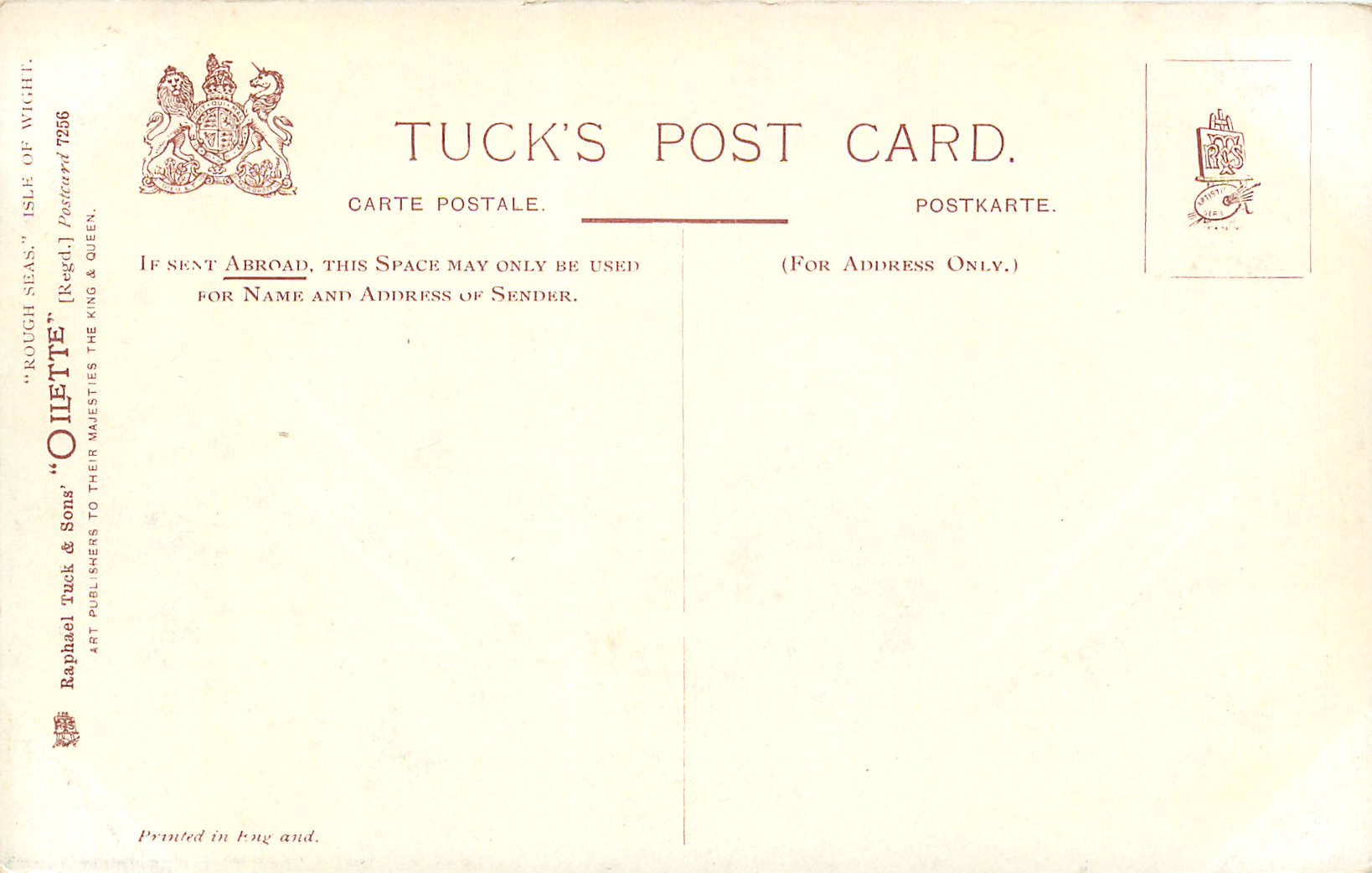 OILETTE, ROUGH SEAS series, same images as 821, 6334, PRINTED IN ENGLAND, listed in 1908/1909 Catalogue