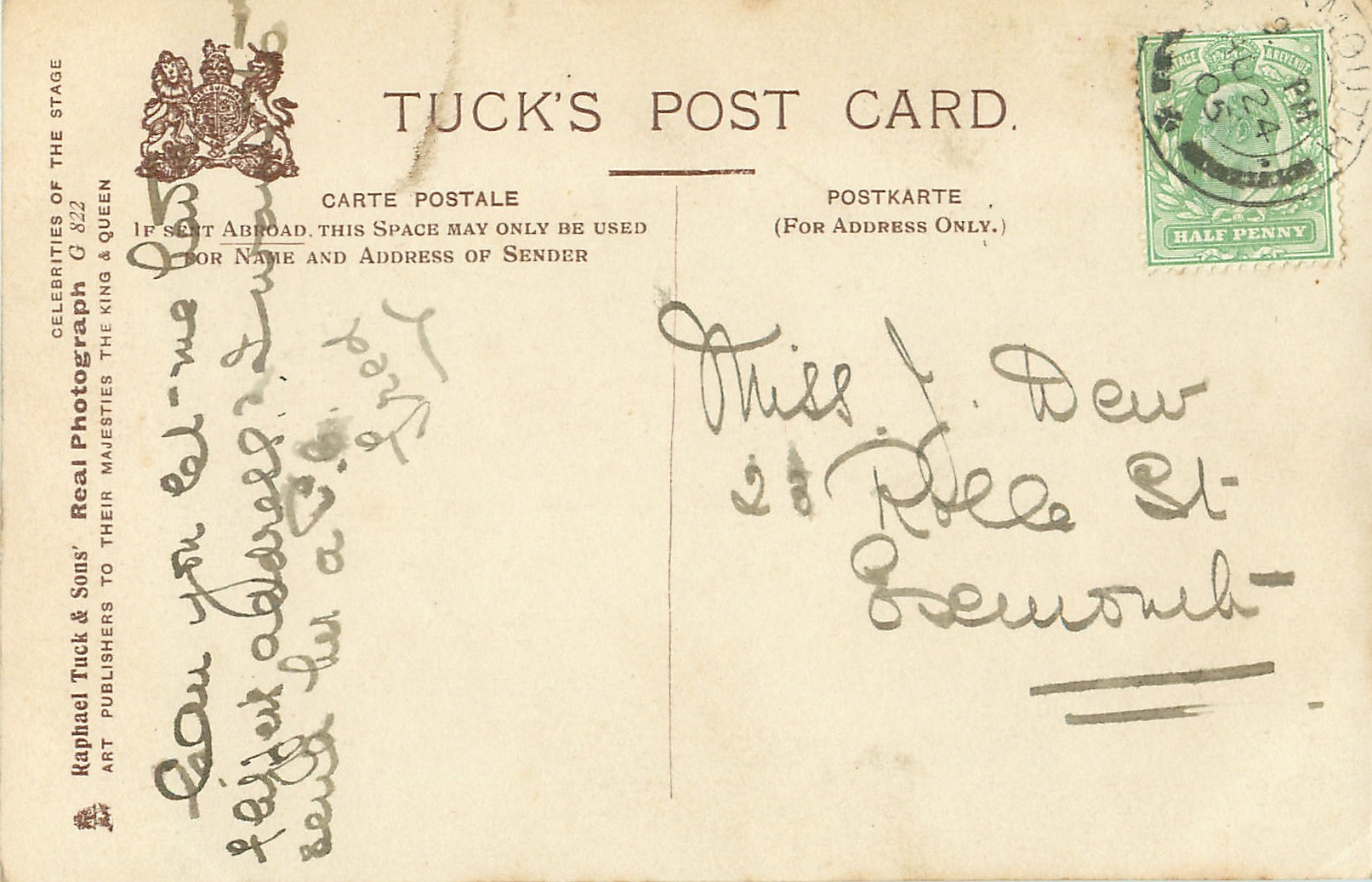 PHOTO JOHNSTON & HOFFMAN Ruth Vincent 1877 Eng.-1955 London Married Lt. Col. John Fraser of the Royal Horse Guards was Gretchen in "The Grand Duke" Savoy Th. 1896