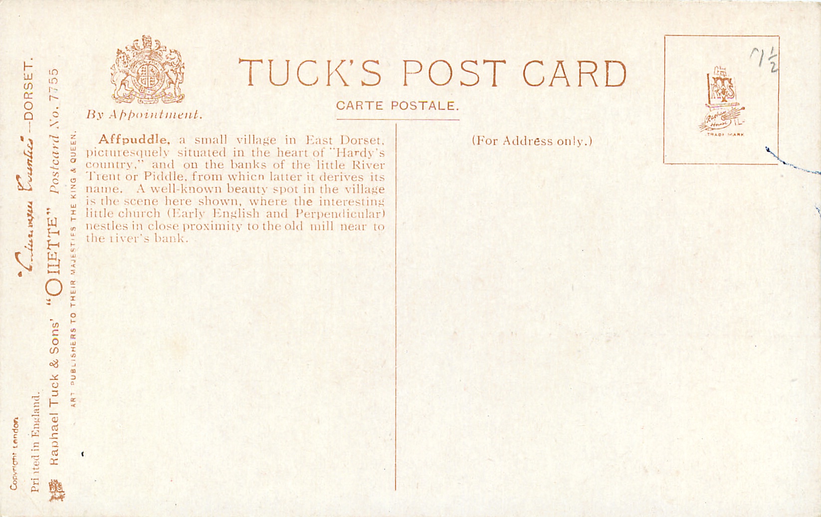 OILETTE, PICTURESQUE COUNTIES, PRINTED IN ENGLAND, come oilfacsim but not so trade named, 2 backs, listed in 1930 POSTCARD Catalogue