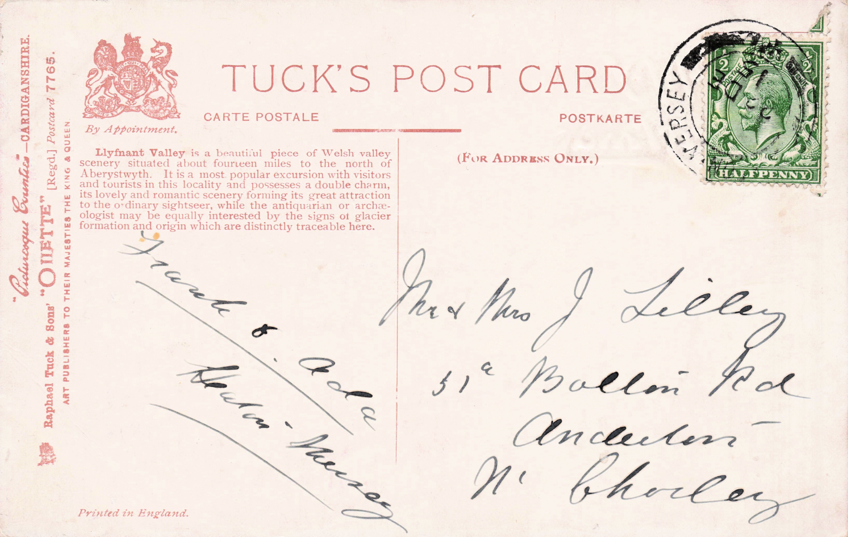 OILETTE, PICTURESQUE COUNTIES - CARDIGANSHIRE, PRINTED IN ENGLAND, listed in 1908/1909 & 1911/1912 Postcard Catalogue