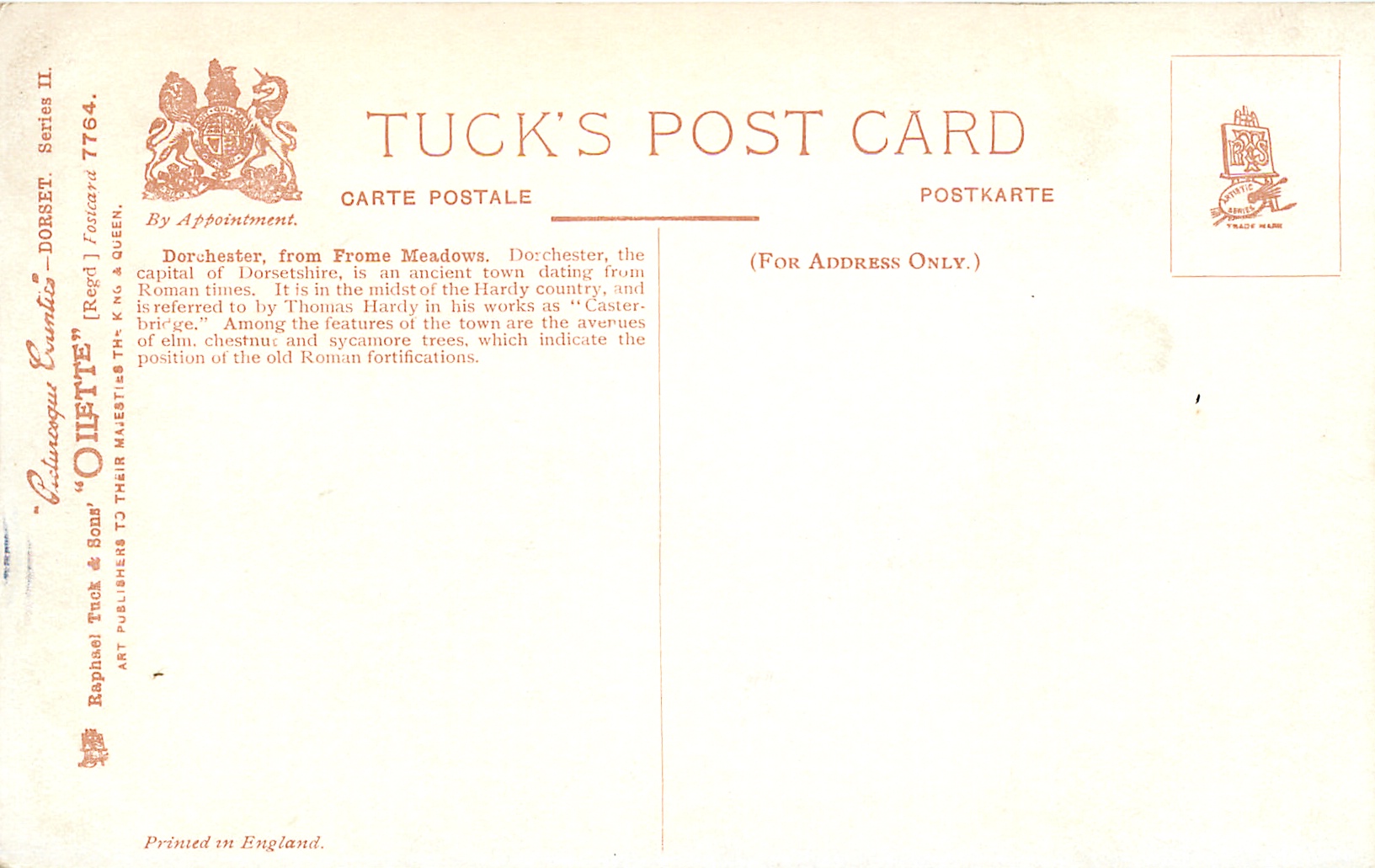 OILETTE, PICTURESQUE COUNTIES - DORSET SERIES II on cards, PRINTED IN ENGLAND, listed in 1908/1909 & 1911/1912 Postcard Catalogue