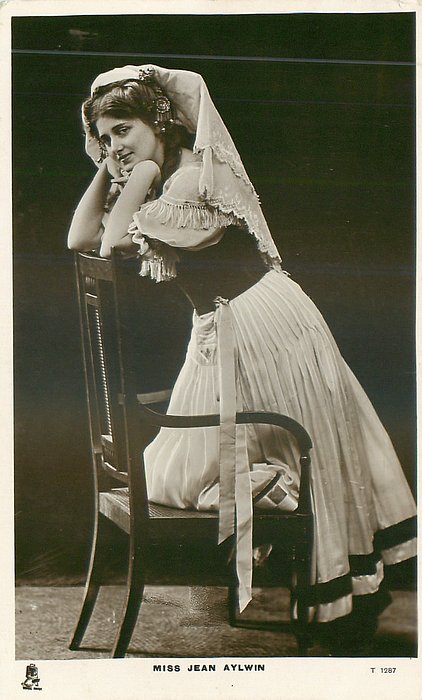 MISS JEAN AYLWIN leans both elbows on back of chair, facing left, looking front