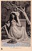 mother seated, child on ground in front, large hat to left