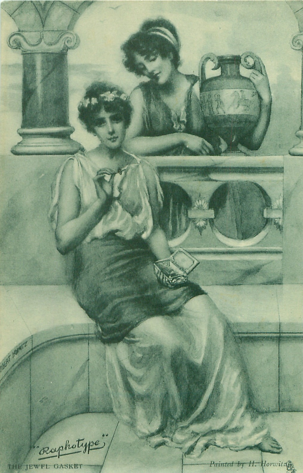 RAPHOTYPE, PROCESSED BAVARIA (in stamp box), artists name comes in black or red, same images RAPHOTYPE green/black 2809, listed in 1904 POSTCARD Catalogue