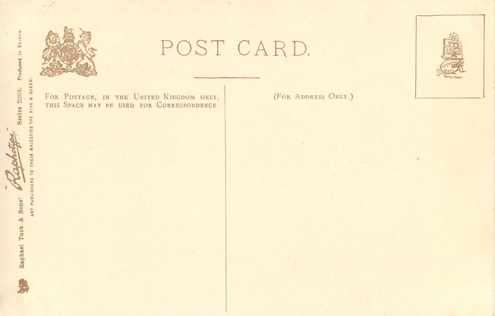 RAPHOTYPE, PRODUCED IN BAVARIA, same set sepia 2803, monochrome, listed in 1904 POSTCARD Catalogue