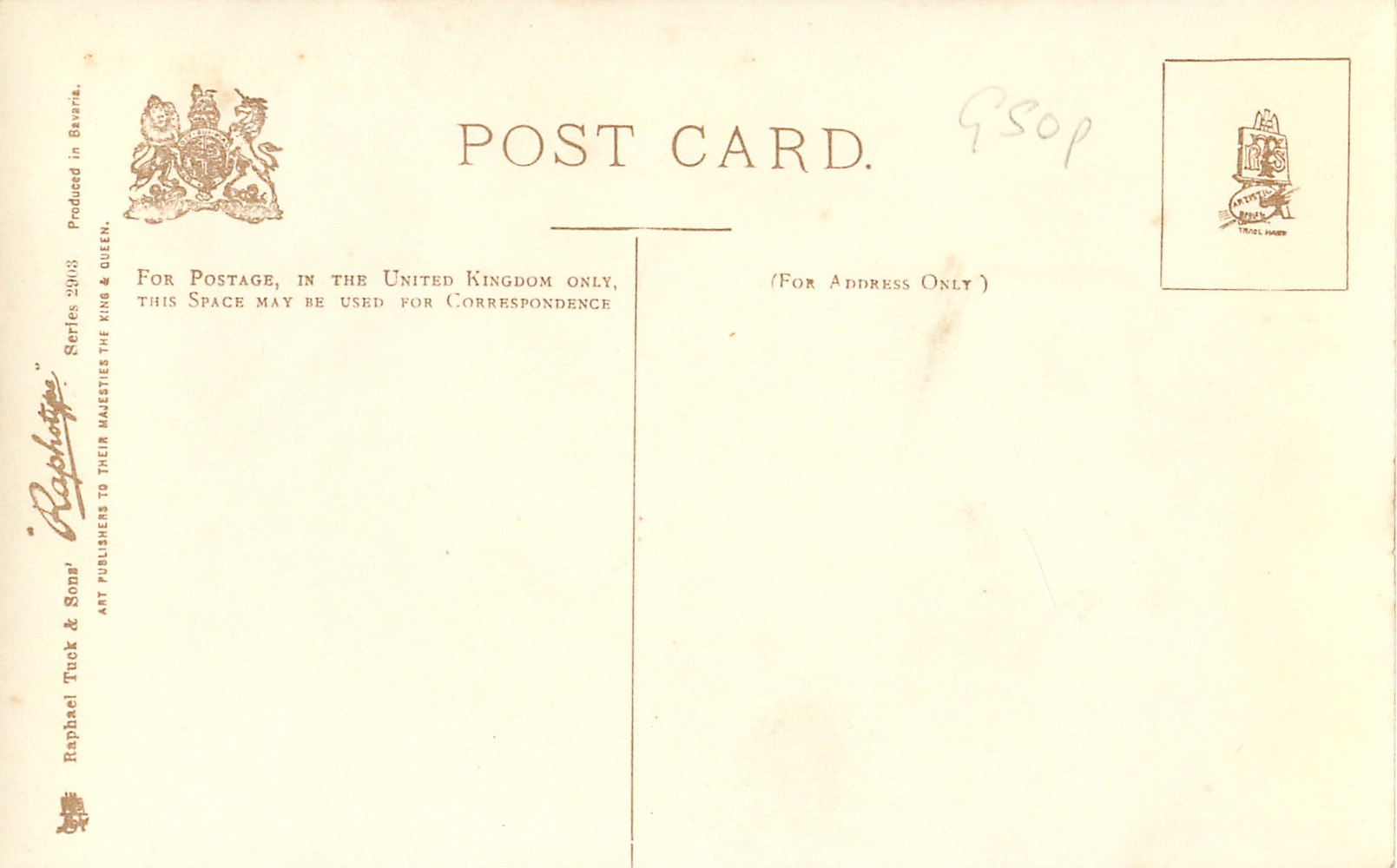 RAPHOTYPE, PRODUCED IN BAVARIA, same set sepia 2803, monochrome, listed in 1904 POSTCARD Catalogue