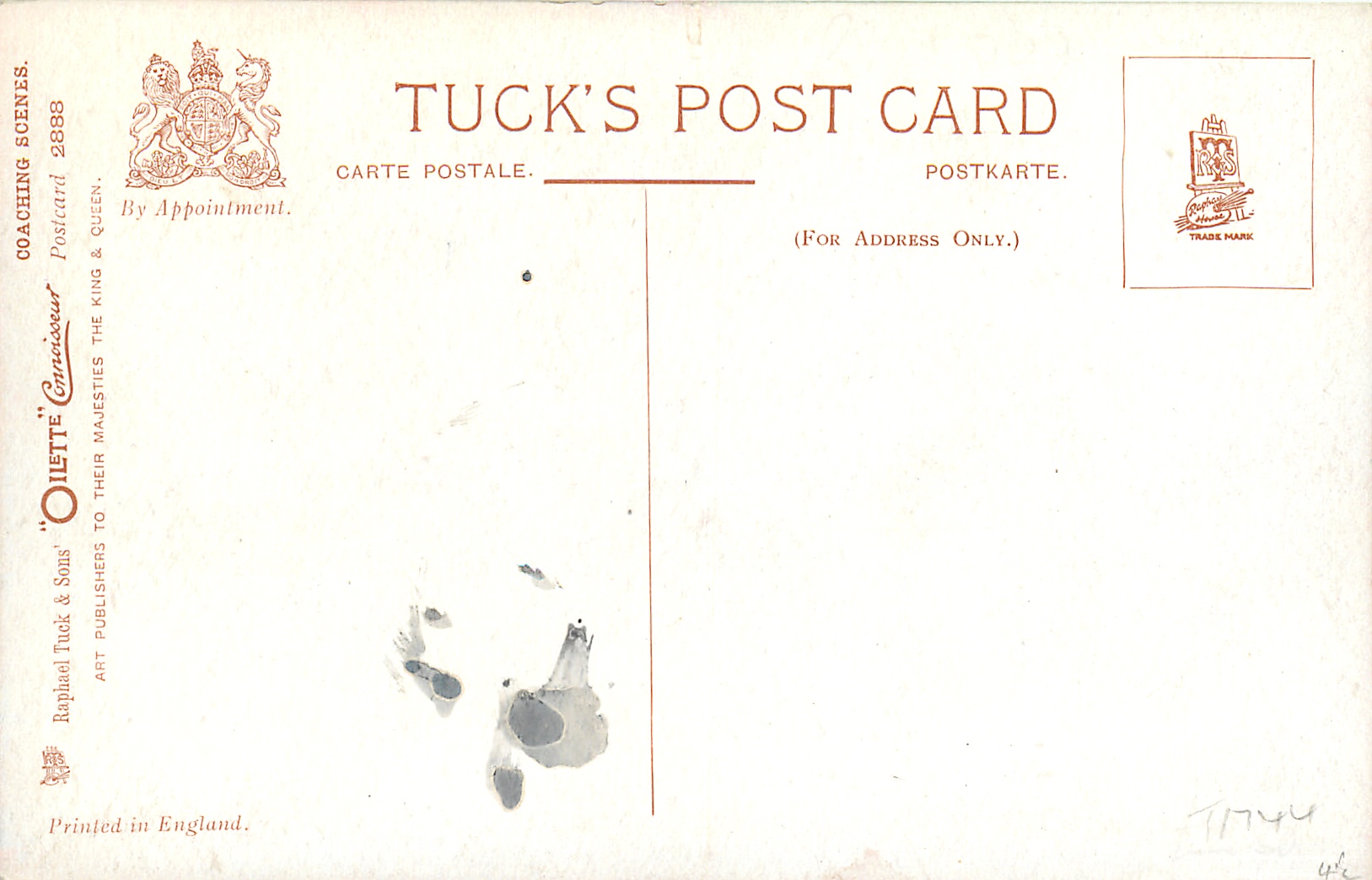 OILETTE CONNOISSEUR, PRINTED IN ENGLAND, COPYRIGHT LONDON, or PRINTED IN THE UNITED KINGDOM, come O/F but not so trade named, listed in TUCK'S TRAVELOGUES (USA?1905)