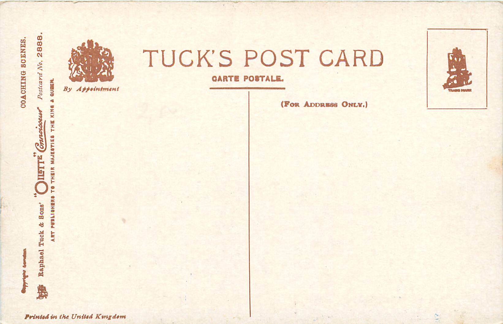 OILETTE CONNOISSEUR, PRINTED IN ENGLAND, COPYRIGHT LONDON, or PRINTED IN THE UNITED KINGDOM, come O/F but not so trade named, listed in TUCK'S TRAVELOGUES (USA?1905)