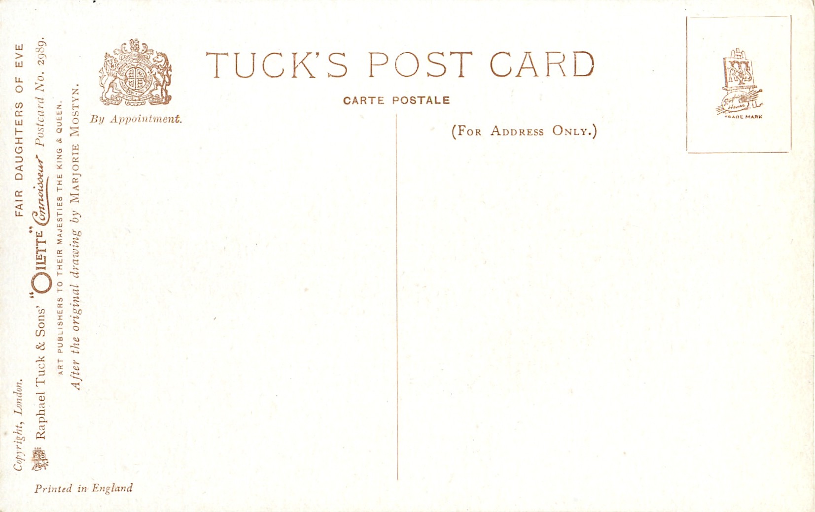 OILETTE CONNOISSEUR, COPYRIGHT LONDON, PRINTED IN ENGLAND, come with & w/o quotes, AFTER THE ORIGINAL DRAWING BY MARJORIE MOSTYN.