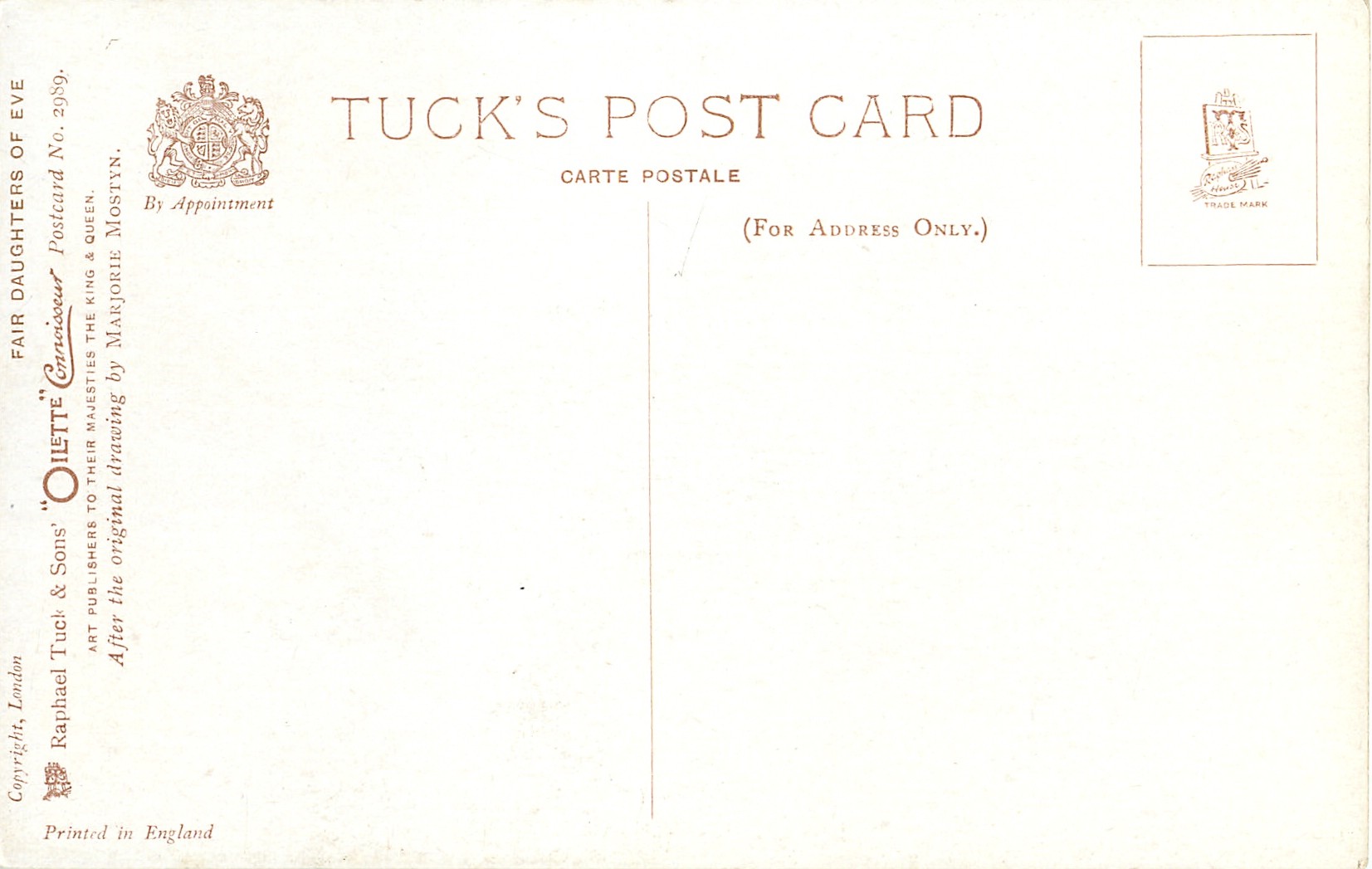 OILETTE CONNOISSEUR, COPYRIGHT LONDON, PRINTED IN ENGLAND, come with & w/o quotes, AFTER THE ORIGINAL DRAWING BY MARJORIE MOSTYN.
