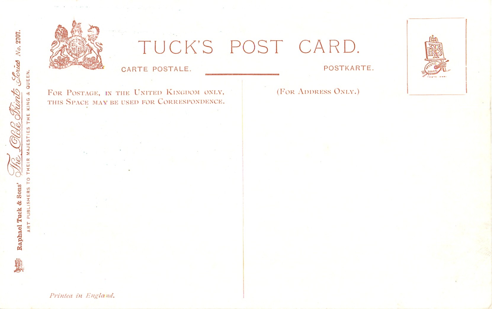 PRINTED IN ENGLAND, listed in 1908/1909 & 1911/1912 & 1930 POSTCARD Catalogues